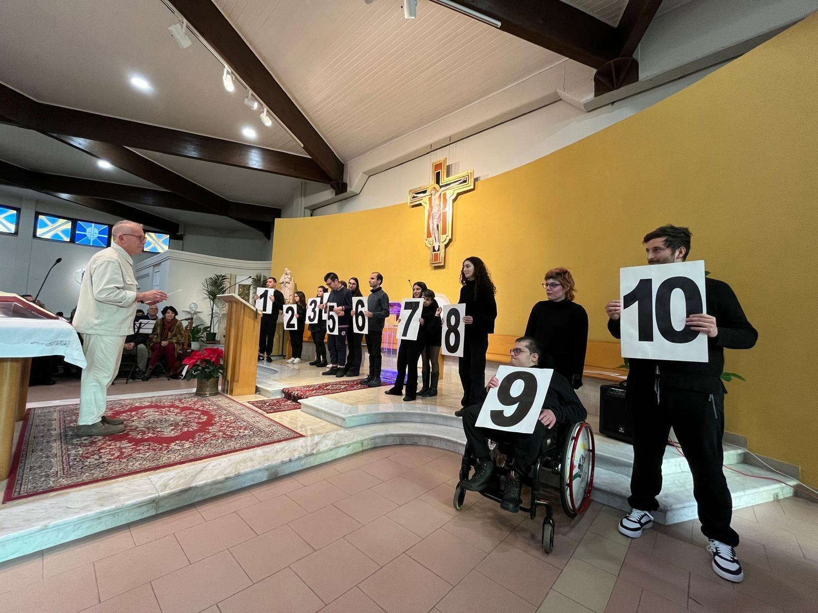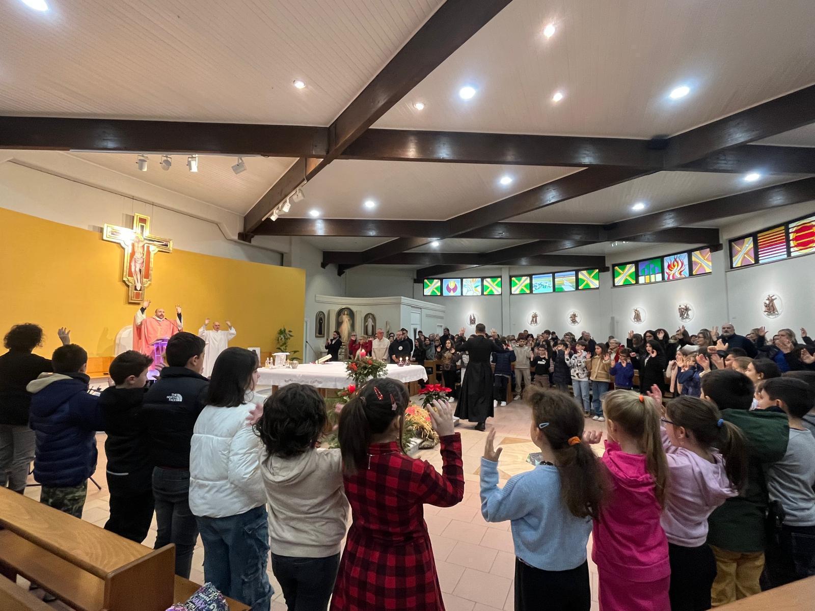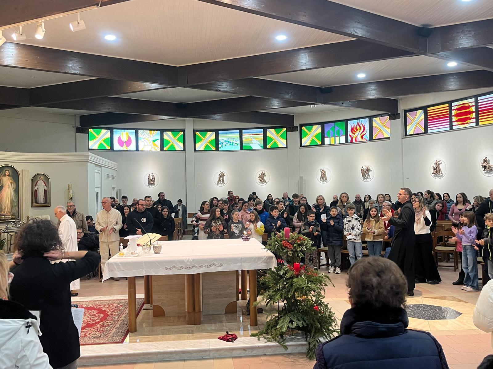 Una “domenica della gioia” carica di emozione e solidarietà quella vissuta nella terza domenica d’Avvento presso la parrocchia di Piazza Tevere. Protagonisti i ragazzi del Polo Autismo Sant’Eusanio dell’Associazione Loco Motiva, accolti con calore da circa sessanta bambini del catechismo che hanno animato la Messa delle 11:30 con canti, balli e tanta partecipazione.