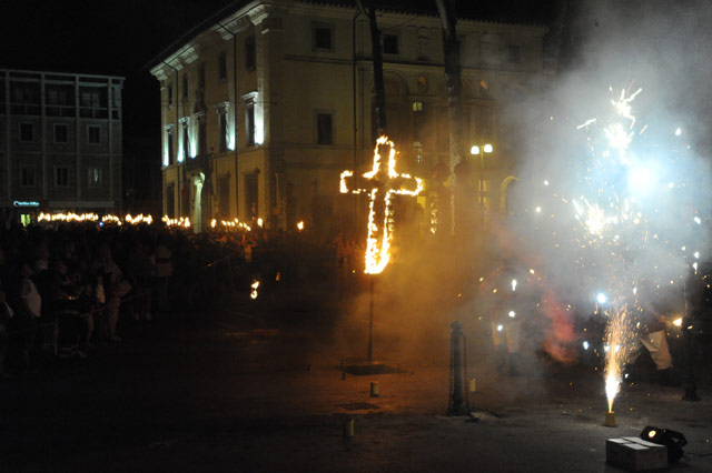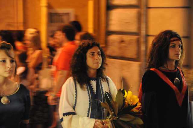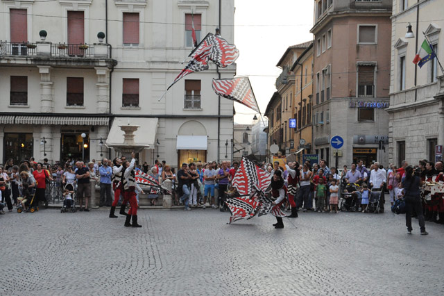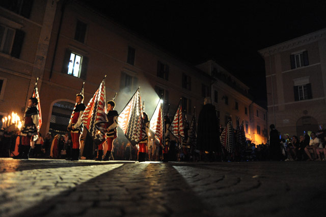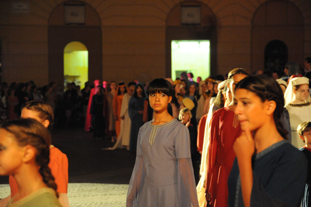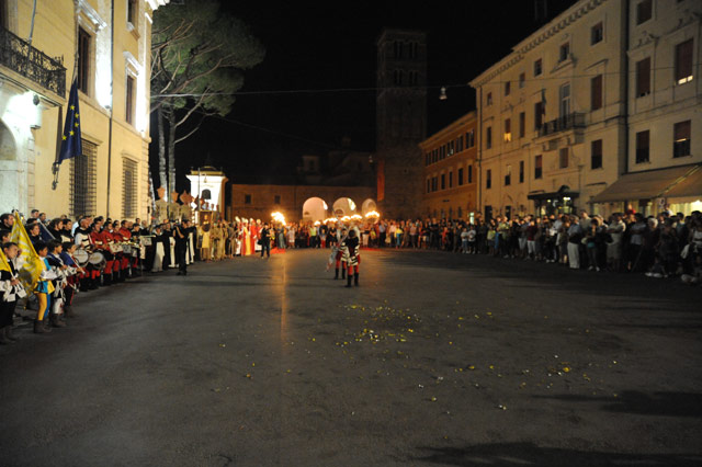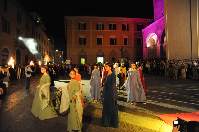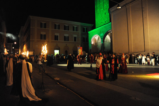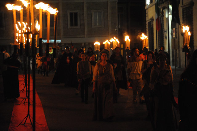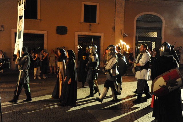 In questo momento di grave difficoltà, pensiamo che il nostro modo di procedere riesca in qualche modo a testimoniare come Rieti possa farcela da sola. In questo trova ragione la nostra volontà di auto-produzione. I costumi che abbiamo cucito, i materiali scenici che abbiamo costruito, la capacità di portare in piazza quasi cinquecento figuranti con una disponibilità economica minima, dimostrano che si può fare tutto al di fuori degli schemi dominanti. A dispetto di tanti eventi, anche più piccoli del nostro, in cui il promotore di turno si vanta di quanto ha speso per promuovere la città – e di solito sono soldi pubblici – noi riusciamo a dimostrare che la città ce la fa benissimo senza. Al centro della operazione non ci sono i soldi, ma gli uomini. I nostri sono i risultati che sono possibili partendo dal senso di umanità, dal fare comunità, dal mettersi in comunione. Un sentimento che restituisce quella coesione, quella unità, che poi possono essere indirizzate in vario modo, anche per sostenere delle realtà in crisi.