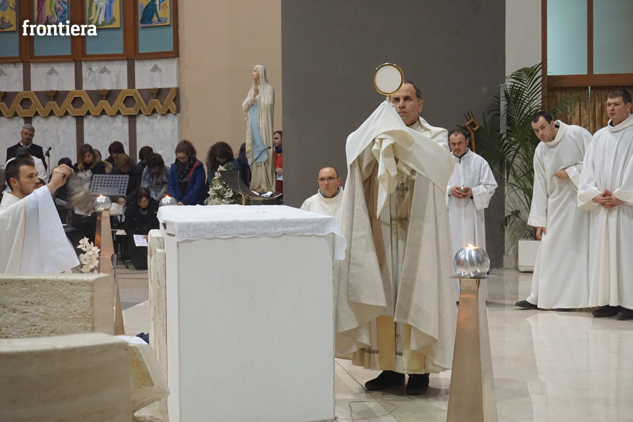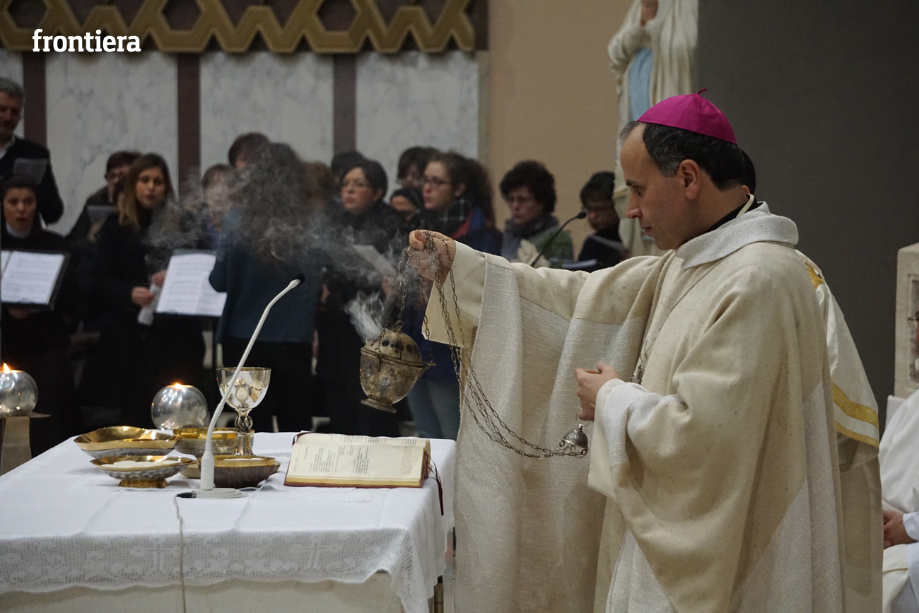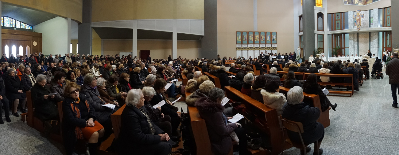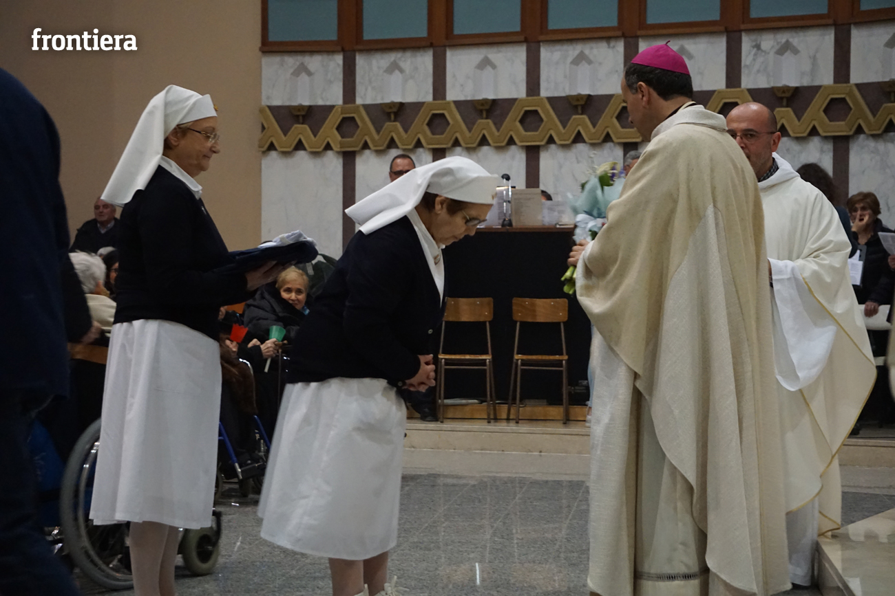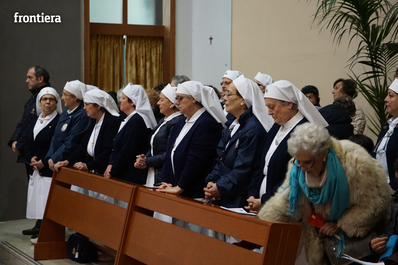 Una “piccola Lourdes”, la parrocchiale cittadina intitolata alla Regina della pace, dove il vescovo ha celebrato la sua seconda eucaristia della Giornata mondiale del malato. In prima fila, accanto ai tanti anziani, disabili, persone che portano ogni giorno la croce, i barellieri e dame dell’Unitalsi (tra cui i giovani che hanno appena svolto il corso per diventare unitalsiani), i volontari della Misericordia, medici e infermieri dell’ambulatorio della carità diocesano. La liturgia, coordinata dal diacono Nazzareno Iacopini, responsabile della Pastorale della Salute con l’immancabile don Luigi Bardotti cappellano di Lourdes, preparata dal parroco della parrocchia ospitante don Fabrizio Borrello con i suoi collaboratori, è stata animata da alcuni cantori del coro diocesano giunti per l’occasione a dare manforte al coretto locale, sotto la direzione di Barbara Fornara e all’organo Lorenzo Serva.