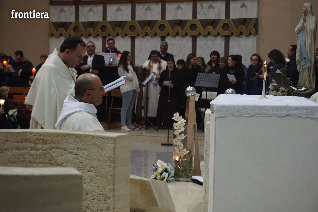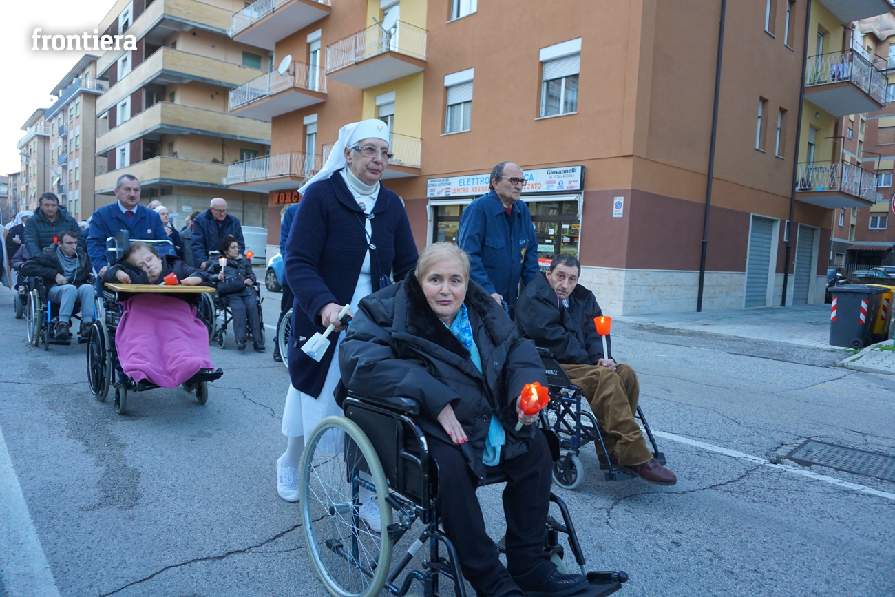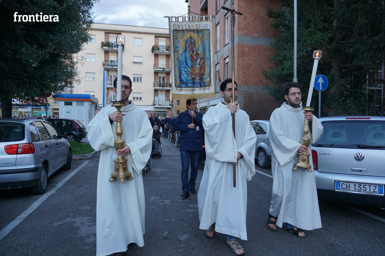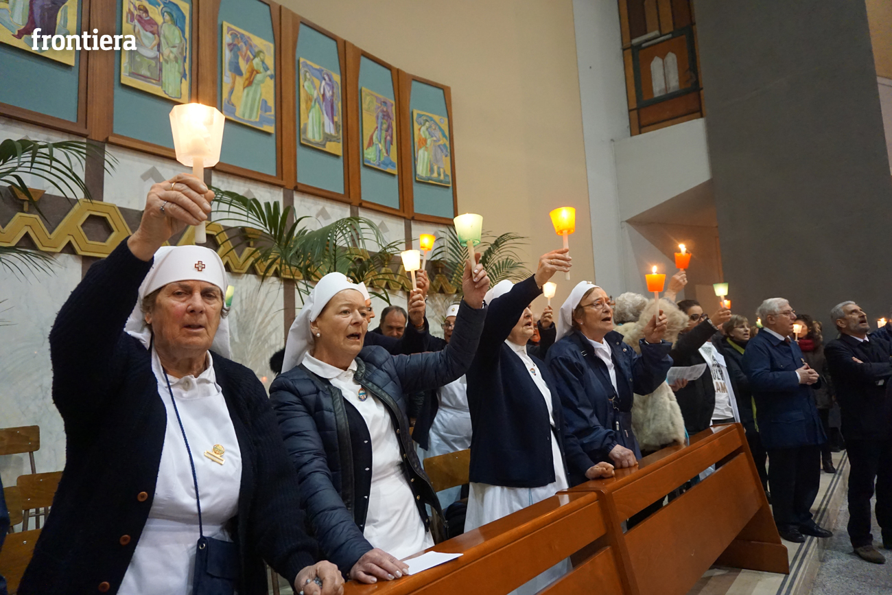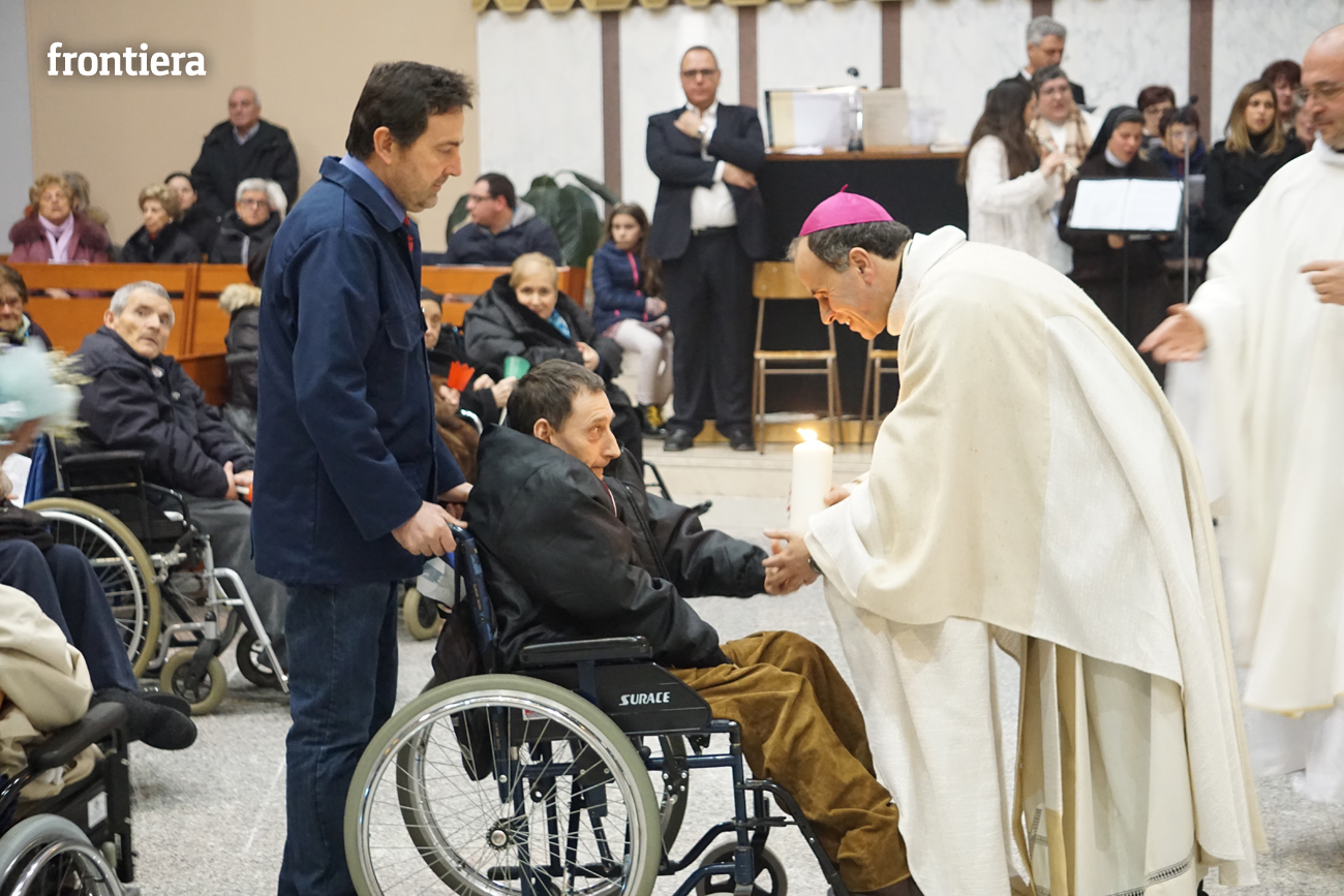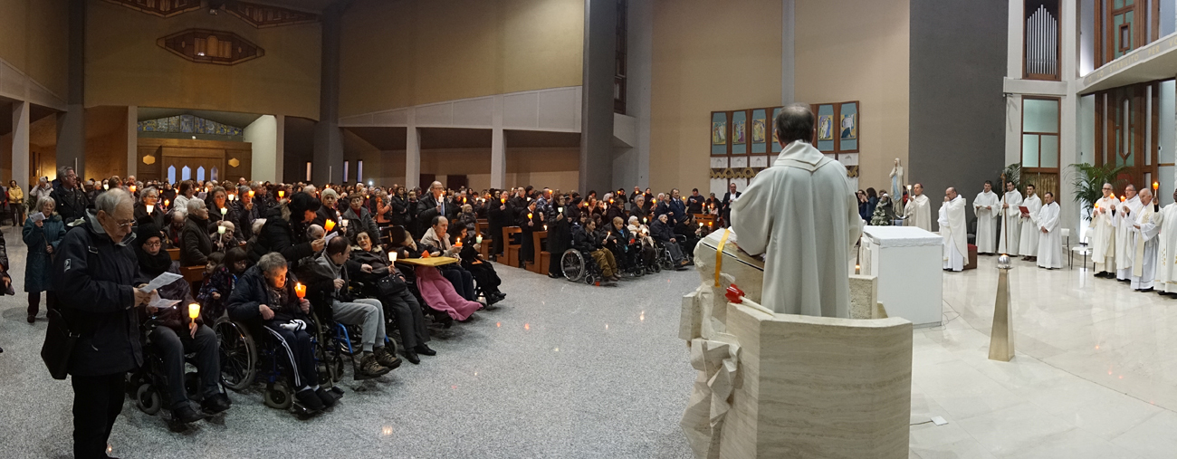 Grande festa, come al solito, nel giorno che commemora il primo anniversario dell’apparizione della Madonna a Lourdes. Resa quest’anno ancora più solenne in quanto celebrazione giubilare. La ricorrenza dell’undici febbraio è stata vissuta in diocesi come “Giubileo con i malati”. Malati protagonisti, dunque, e con loro volontari, operatori sanitari e pastorali, fedeli tutti che – dopo il primo appuntamento mattutino e che ha visto gremitissima la cappella dell’ospedale reatino per la Messa e l’amministrazione del sacramento dell’Unzione a molti infermi da parte del vescovo coadiuvato dai cappellani – hanno riempito la chiesa di Regina Pacis per la tradizionale liturgia lourdiana.