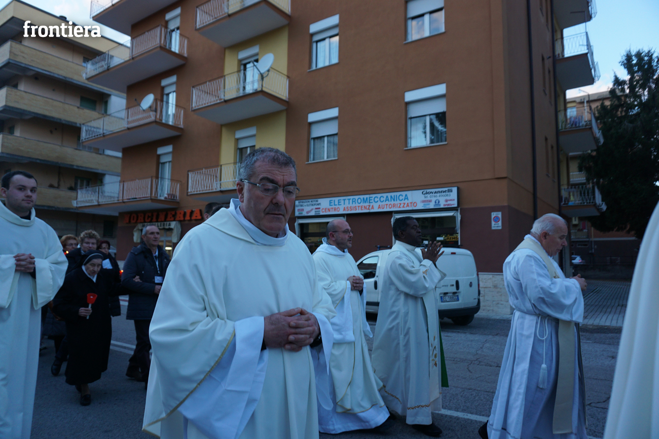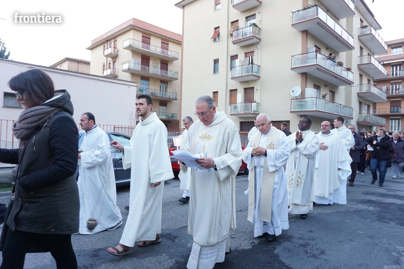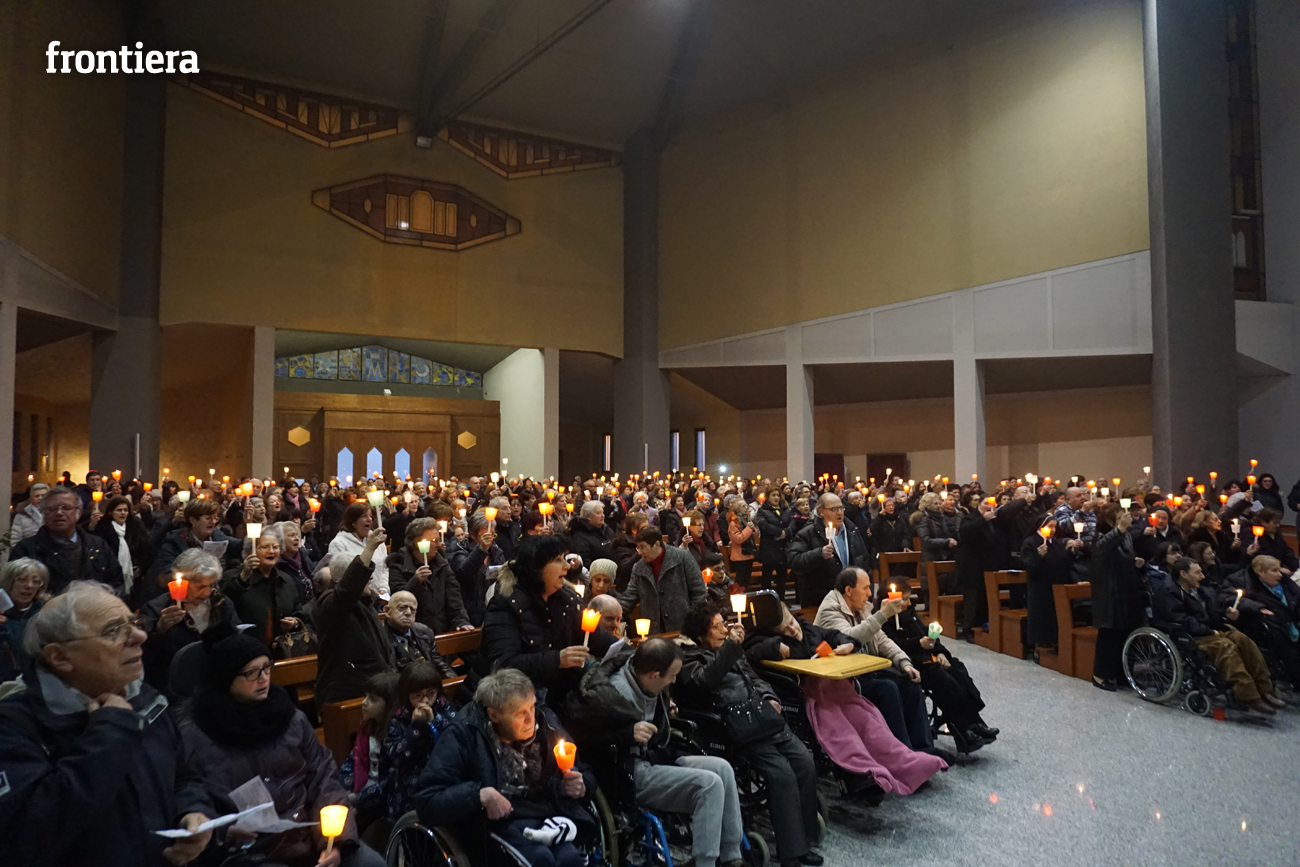 Al termine, i classici riti lourdiani, che riprendono in piccolo il suggestivo momento che ogni pomeriggio si svolge nell’ésplanade del santuario francese sui Pirenei accanto alla grotta di Massabielle in cui la piccola Bernadette Soubirous vide la Vergine. Esposto il Santissimo Sacramento, con i flambeaux accesi, si è snodata la processione eucaristica nelle vie attorno alla chiesa. Al rientro, eseguito l’inno e letta la preghiera dell’Anno Santo della misericordia, monsignor Domenico Pompili, dopo aver benedetto i malati, ha impartito la benedizione eucaristica alla folta assemblea che ha poi con viva devozione innalzato il tradizionale canto dell’Ave di Lourdes.