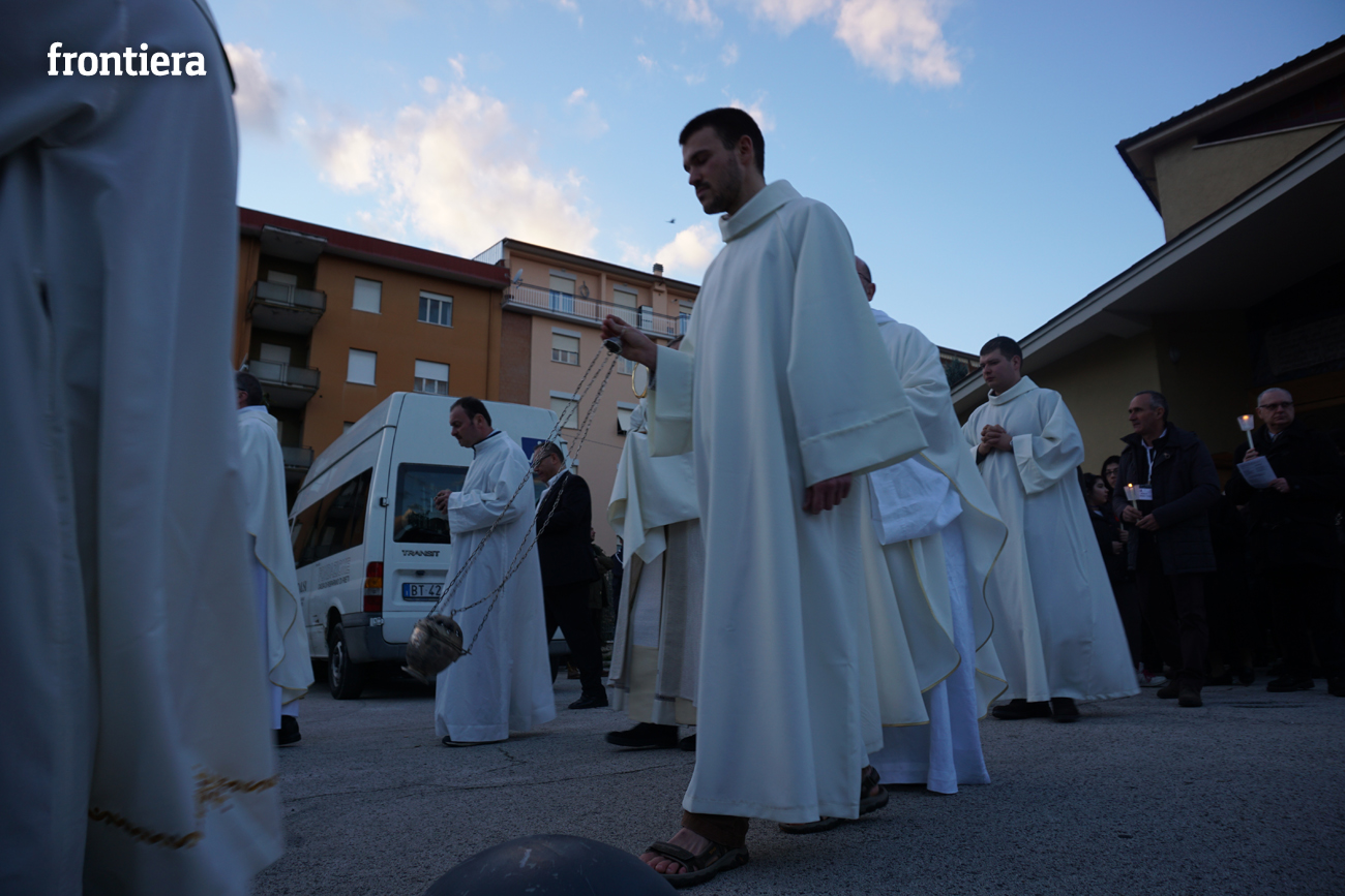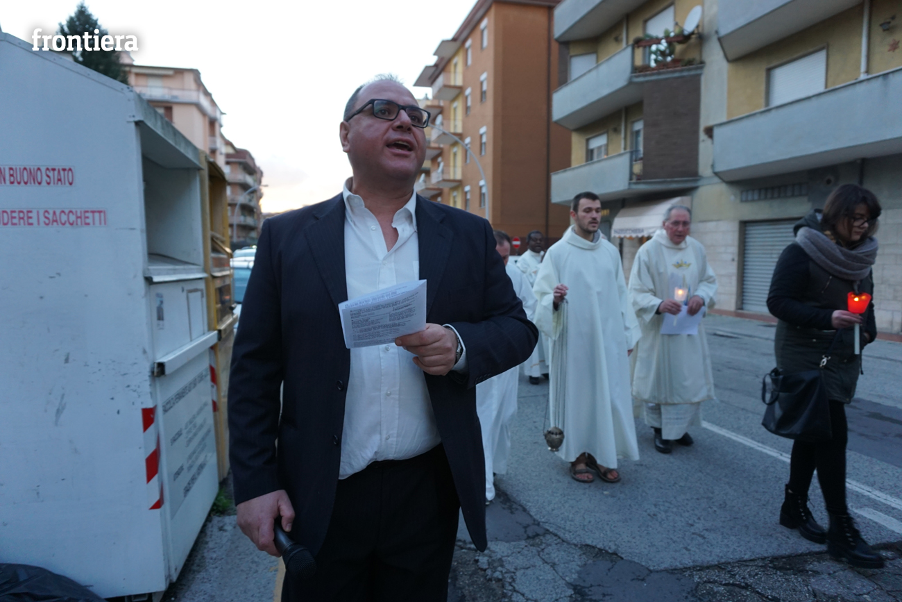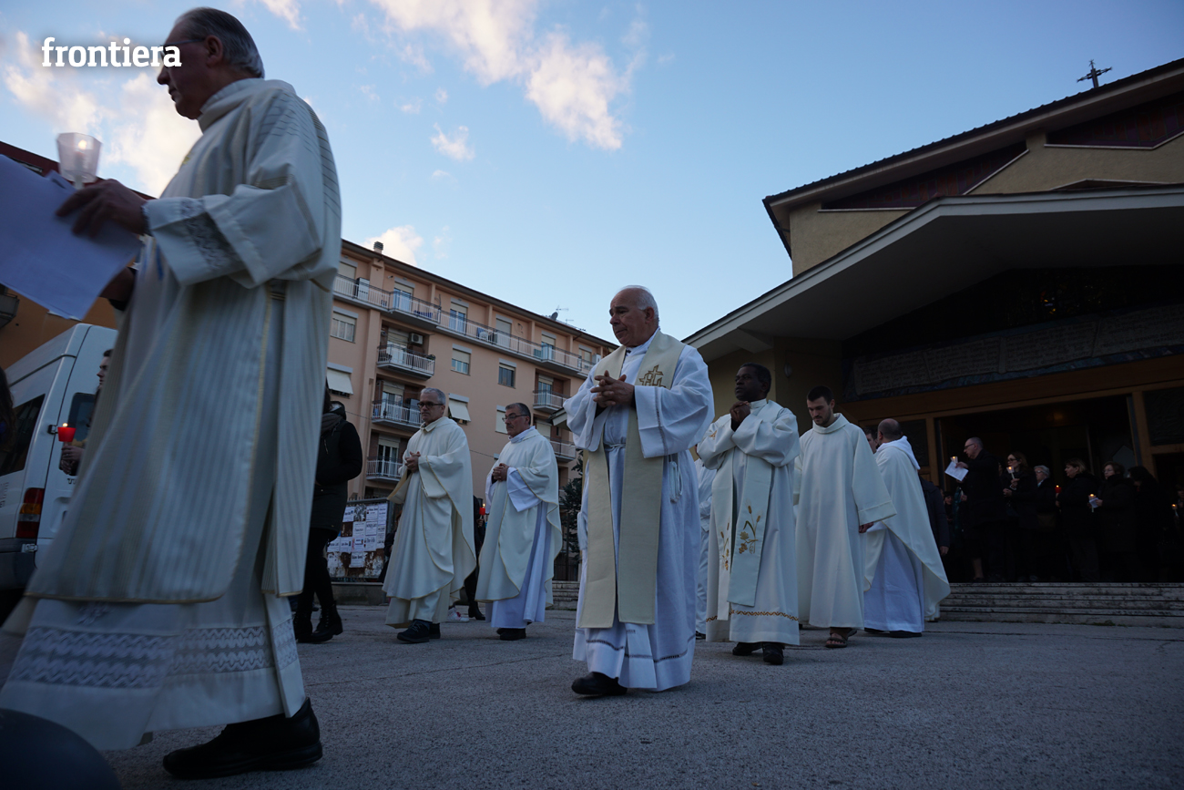 Al termine, i classici riti lourdiani, che riprendono in piccolo il suggestivo momento che ogni pomeriggio si svolge nell’ésplanade del santuario francese sui Pirenei accanto alla grotta di Massabielle in cui la piccola Bernadette Soubirous vide la Vergine. Esposto il Santissimo Sacramento, con i flambeaux accesi, si è snodata la processione eucaristica nelle vie attorno alla chiesa. Al rientro, eseguito l’inno e letta la preghiera dell’Anno Santo della misericordia, monsignor Domenico Pompili, dopo aver benedetto i malati, ha impartito la benedizione eucaristica alla folta assemblea che ha poi con viva devozione innalzato il tradizionale canto dell’Ave di Lourdes.