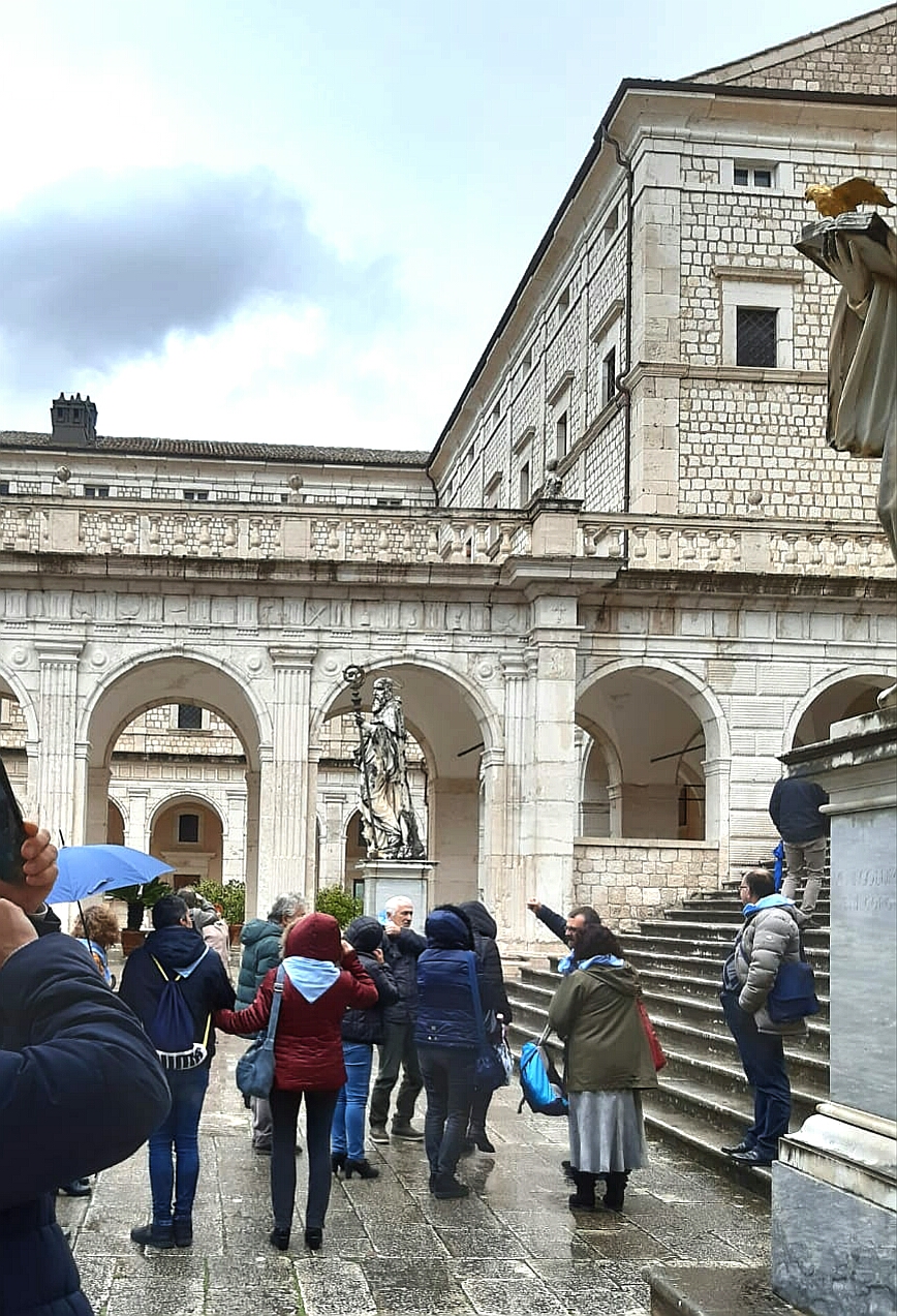L’abbazia di Montecassino, alto luogo dello spirito, è stata la meta scelta dalla parrocchia di Vazia per far esperienza del Cristo, ricco di misericordia, presenza vigile nella vita dei santi patroni d’Italia e di Europa. Certo, il bisogno di prendere e scappare, di allontanarsi dalla quotidianità frenetica, noiosa o ripetitiva che sia, di prendere le distanze, in fondo può giustificare la necessità di fare una pausa dalla routine del quotidiano. Ma la ricerca e la voglia di posare lo sguardo, e l’anima, su qualcosa di nuovo, mai visto e sentito, è stato il vero motivo di questo viaggio che non è proceduto in superficie, ma ha scavato nel profondo.