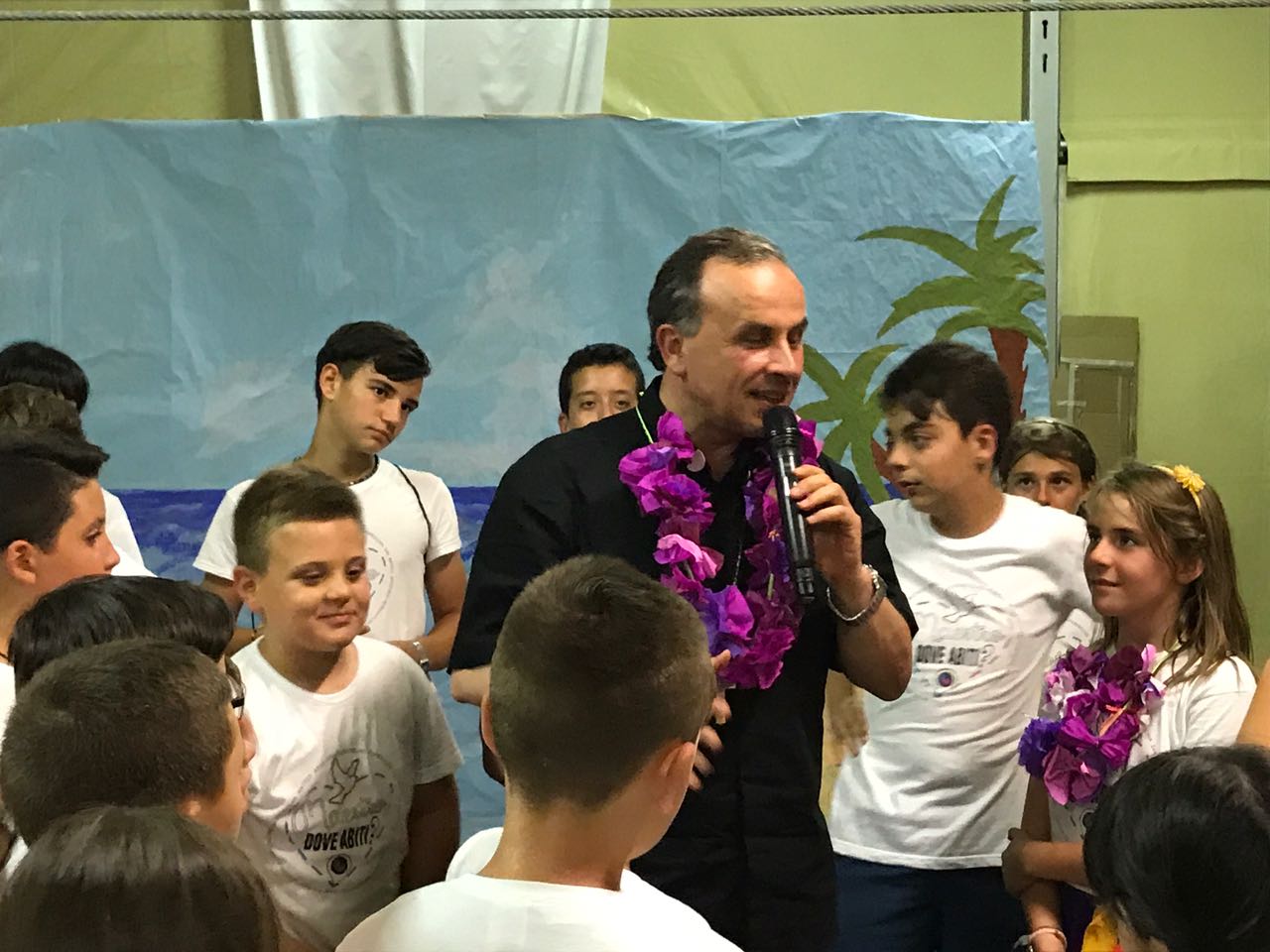 Infine don Giovanni con i bambini hanno donato una maglietta rossa al vescovo con su scritto: «non voglio sentire lamentele», frase che durante tutto il campo estivo il parroco ha ripetuto scherzosamente ai giovani partecipanti invitandoli, con ironia, a considerare sempre il lato positivo delle cose.