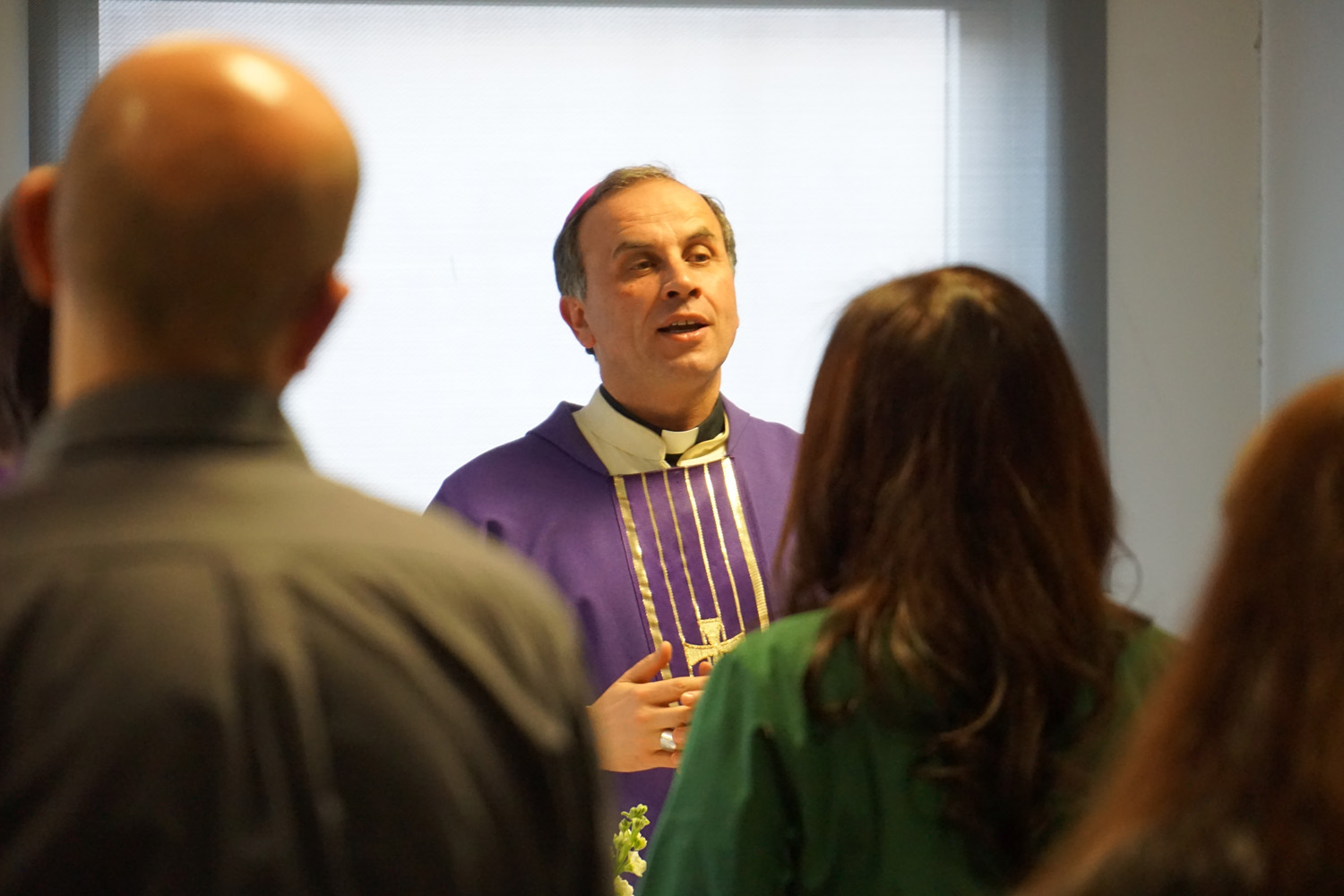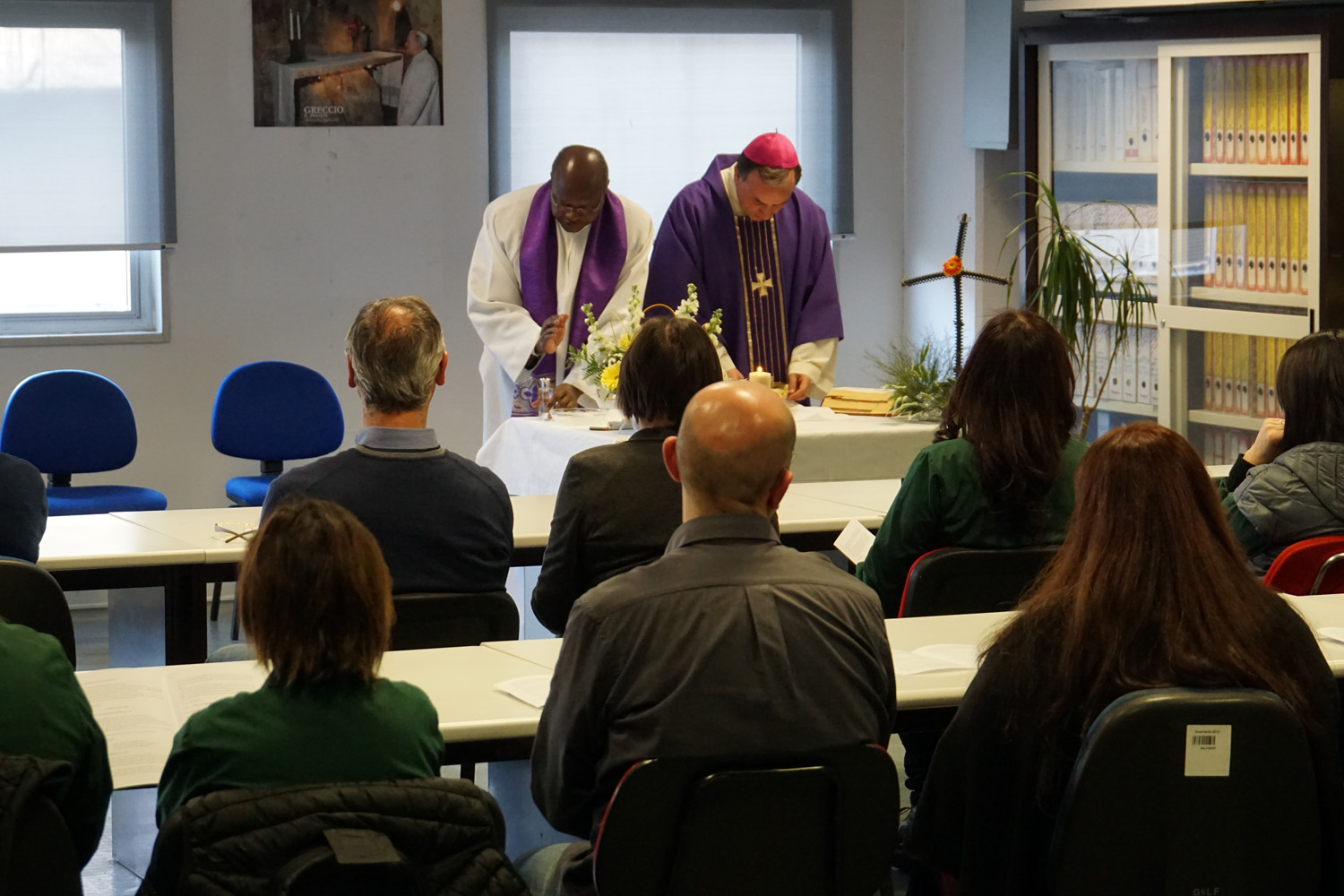 Al termine della Santa Messa, mons Pompili ha impartito la benedizione pasquale ai lavoratori dell’azienda come augurio di ogni bene nel Signore.