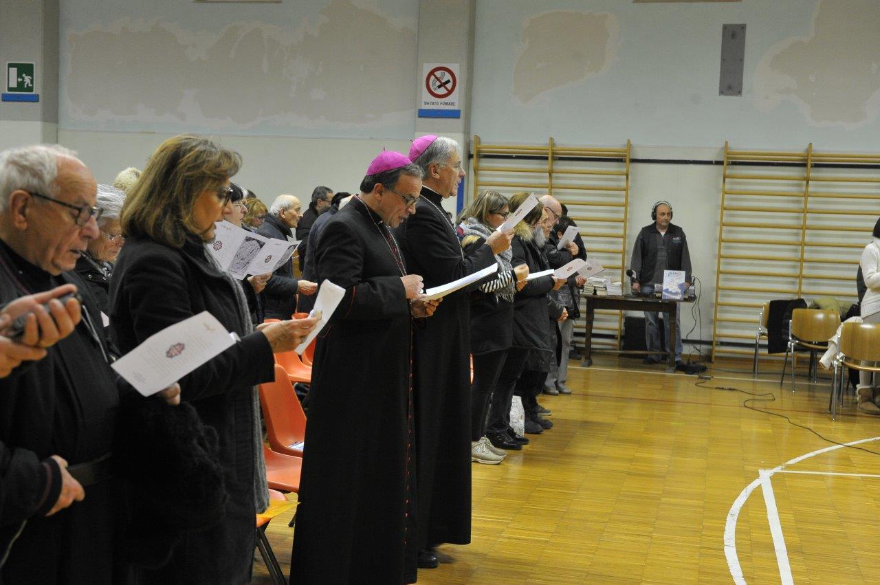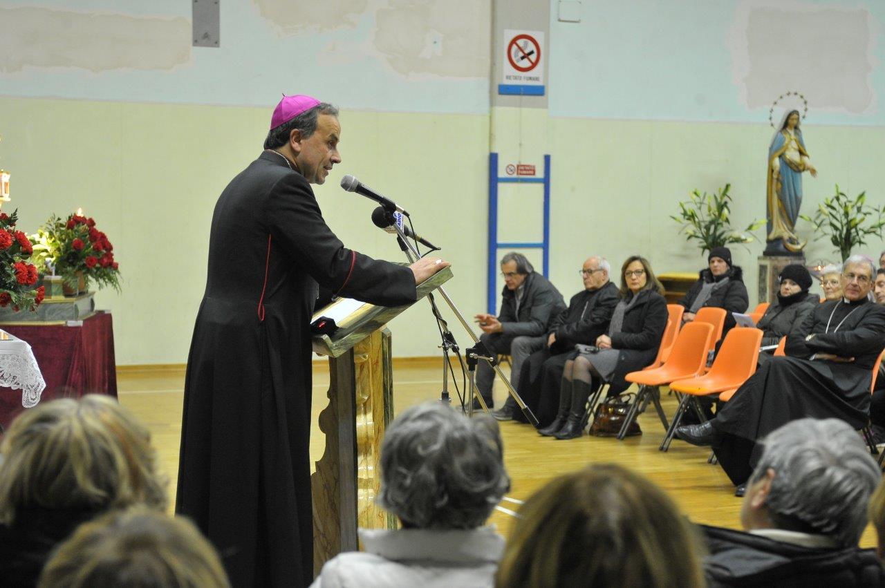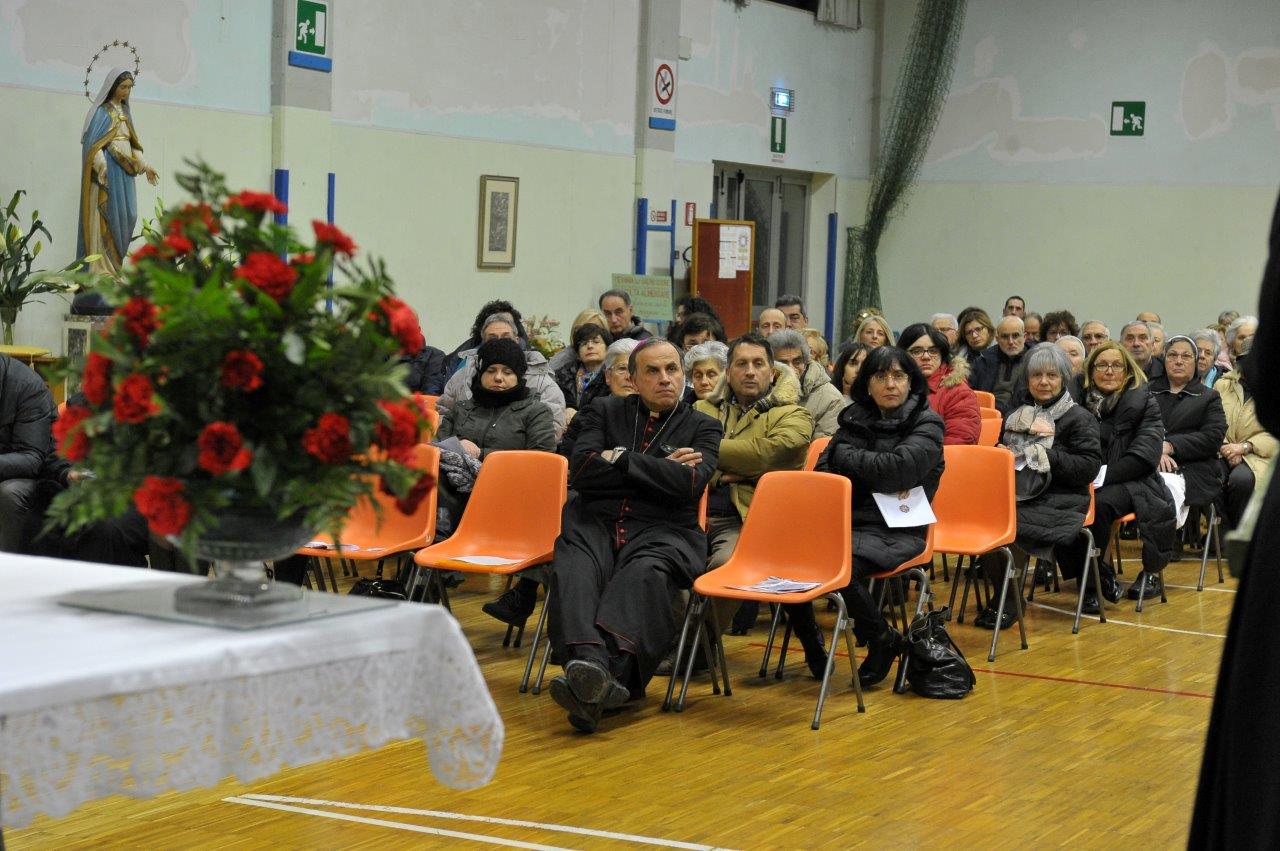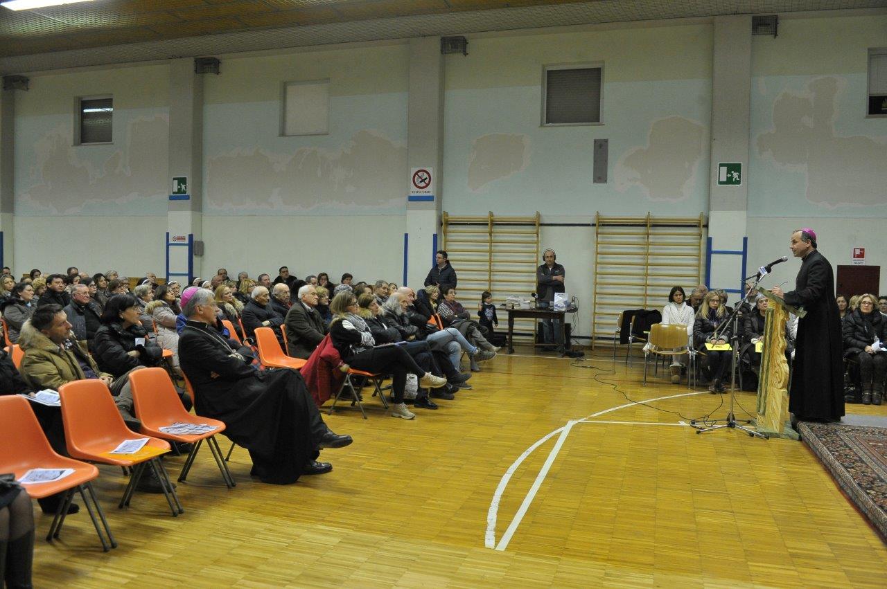 Si è svolta giovedì 12 gennaio presso la palestra del Sacro Cuore in Spoleto una catechesi del vescovo Domenico sul tema “Terremoto: scuola di solidarietà”, condotta a partire dall’esperienza diretta maturata nelle aree di Accumoli e Amatrice colpite dal sisma dello scorso 24 agosto. L’appuntamento era tra quelli compresi nel triduo di preparazione per la festa di san Ponziano, invocato quale protettore dalle calamità naturali e patrono della Chiesa di Spoleto-Norcia, ferita dal terremoto.