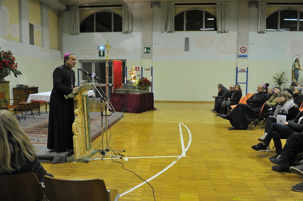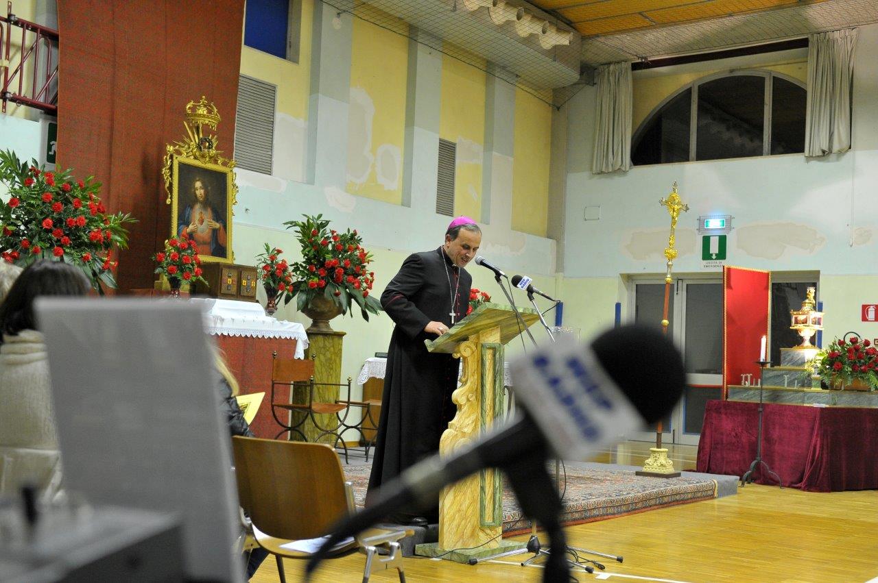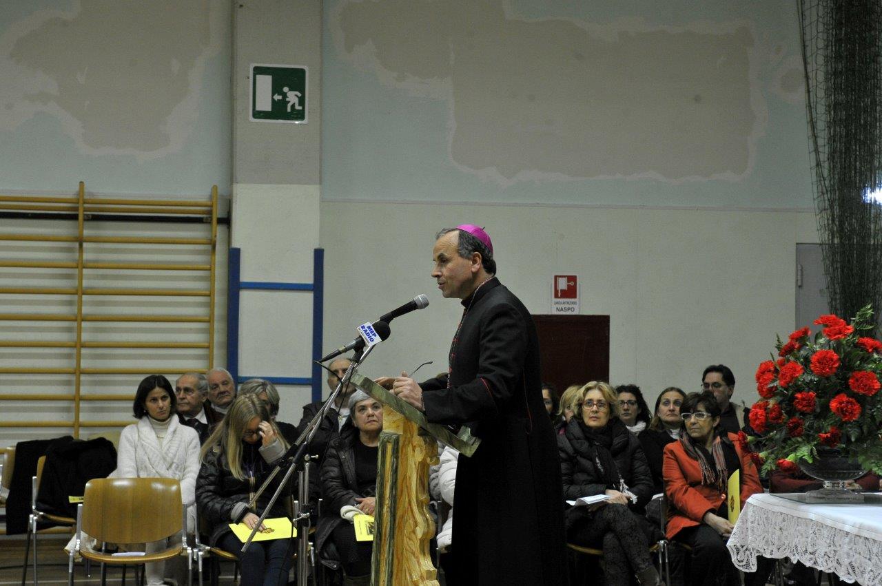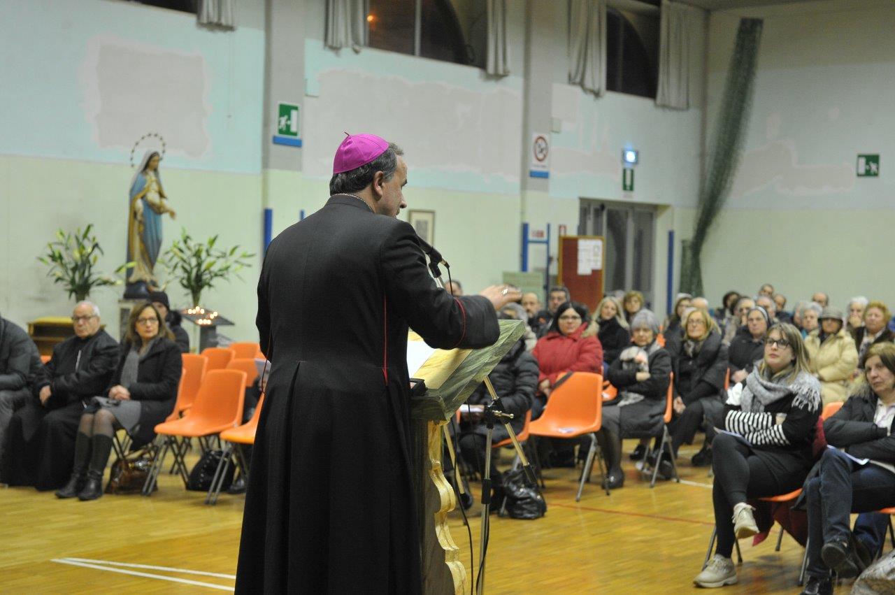 Si è svolta giovedì 12 gennaio presso la palestra del Sacro Cuore in Spoleto una catechesi del vescovo Domenico sul tema “Terremoto: scuola di solidarietà”, condotta a partire dall’esperienza diretta maturata nelle aree di Accumoli e Amatrice colpite dal sisma dello scorso 24 agosto. L’appuntamento era tra quelli compresi nel triduo di preparazione per la festa di san Ponziano, invocato quale protettore dalle calamità naturali e patrono della Chiesa di Spoleto-Norcia, ferita dal terremoto.