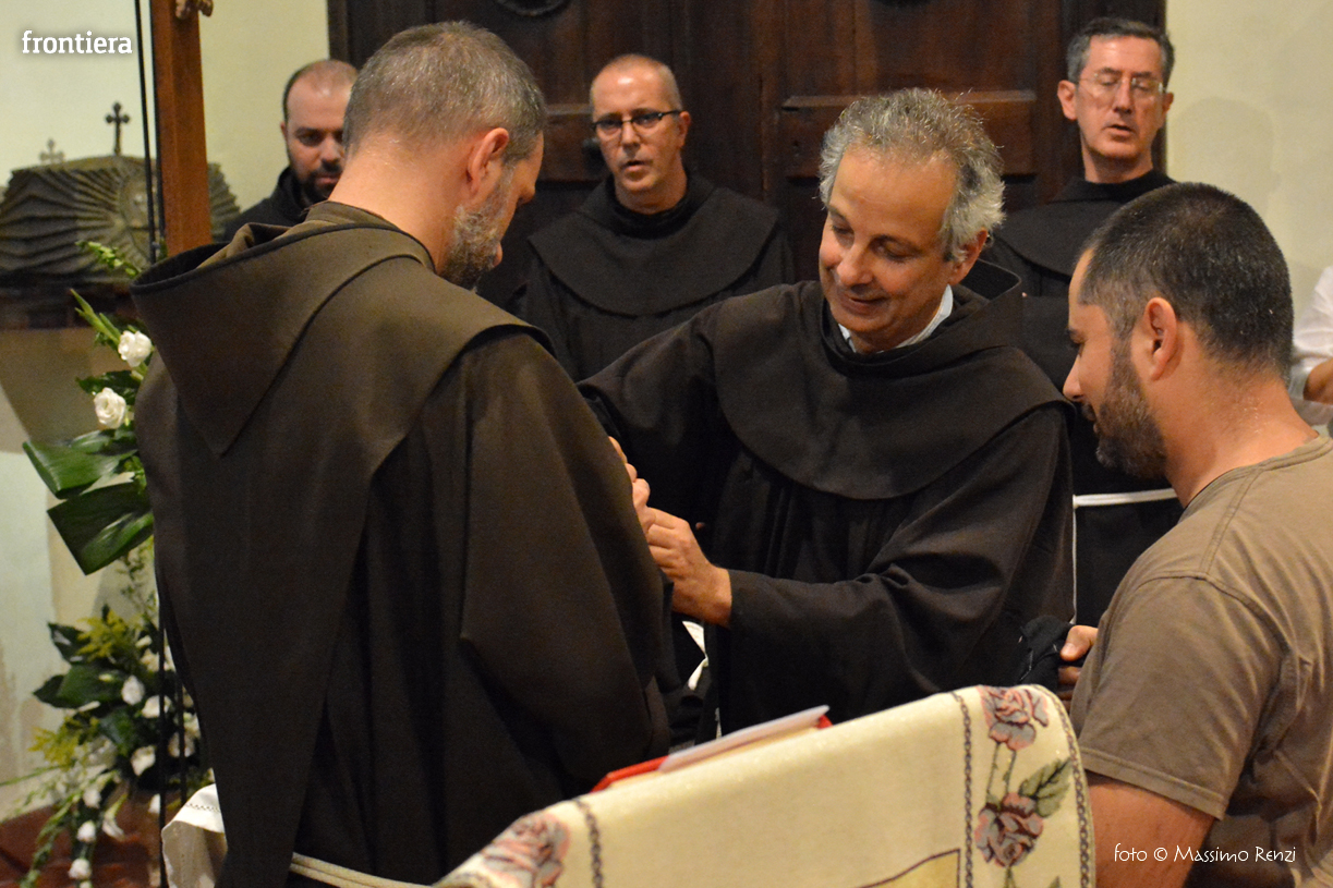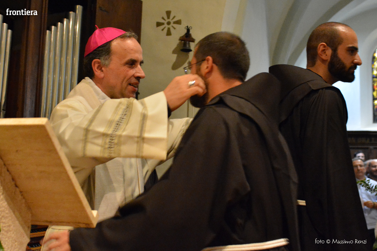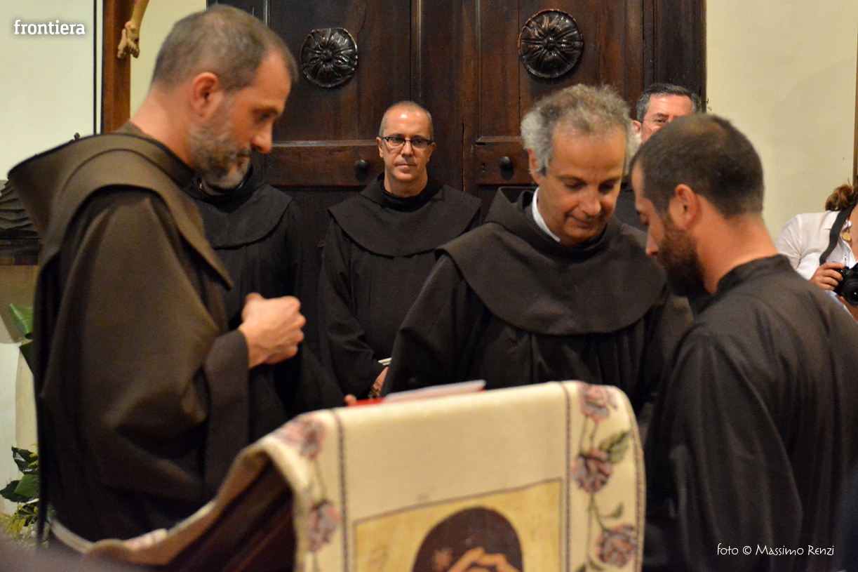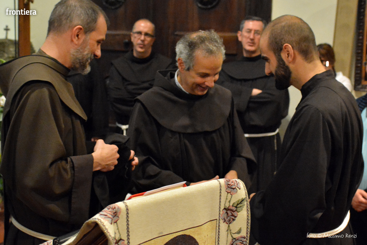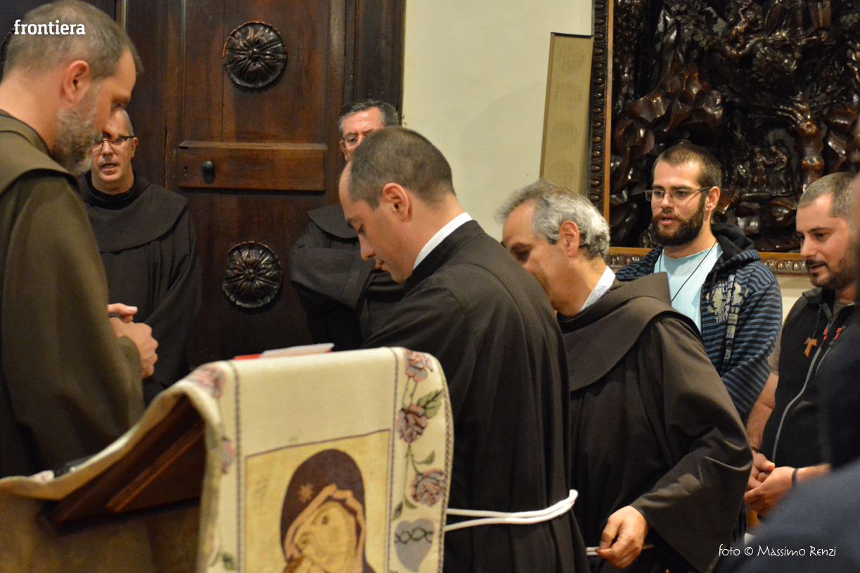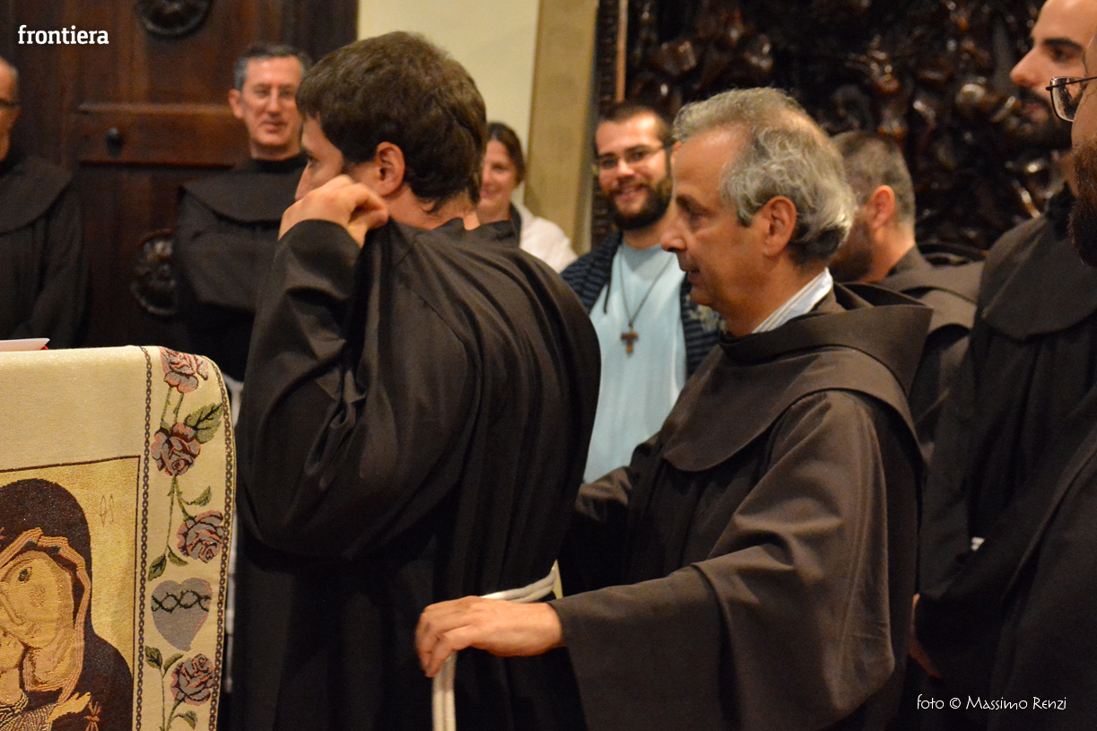 Per loro, mercoledì pomeriggio, il momento di saluto, con la cerimonia in cui hanno vestito il saio marrone stretto dal cordone, senza ancora i tre nodi (simboleggianti i voti religiosi di povertà, castità e obbedienza) che verranno inseriti, per quanti di loro persevereranno nel cammino, al momento della prima professione religiosa dopo l’anno di noviziato. Il rito è avvenuto nel contesto della celebrazione del Vespro, presieduto dal vescovo diocesano, presenti diversi frati dei santuari reatini e di altre località laziali e abruzzesi, alcuni parroci delle località di origine dei postulanti e le loro famiglie. In tanti, subito dopo, si sono uniti alla festa, partecipando al rinfresco organizzato dalla locale fraternità Ofs, per salutare i postulanti divenuti novizi, che poi l’indomani, dopo la Messa mattutina, sono partiti direttamente per La Verna: qui – sul «crudo sasso intra Tevero e Arno», per dirla con Dante, dove Frate Francesco «da Cristo prese l’ultimo sigillo» col dono delle stimmate – andrà avanti il loro itinerario che li porterà, a Dio piacendo, ad abbracciare la forma vitæ che il Poverello d’Assisi ha tracciato per quanti vogliano farsi come lui sposi di Madonna povertà.