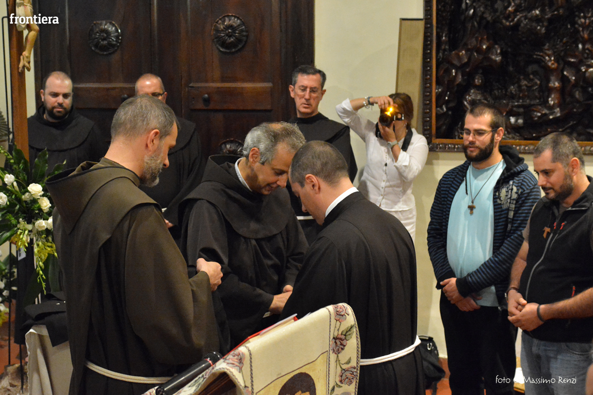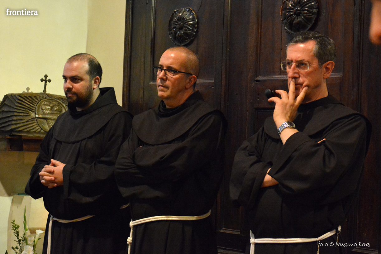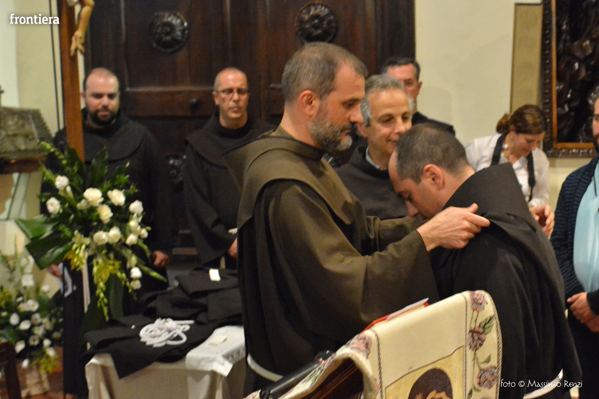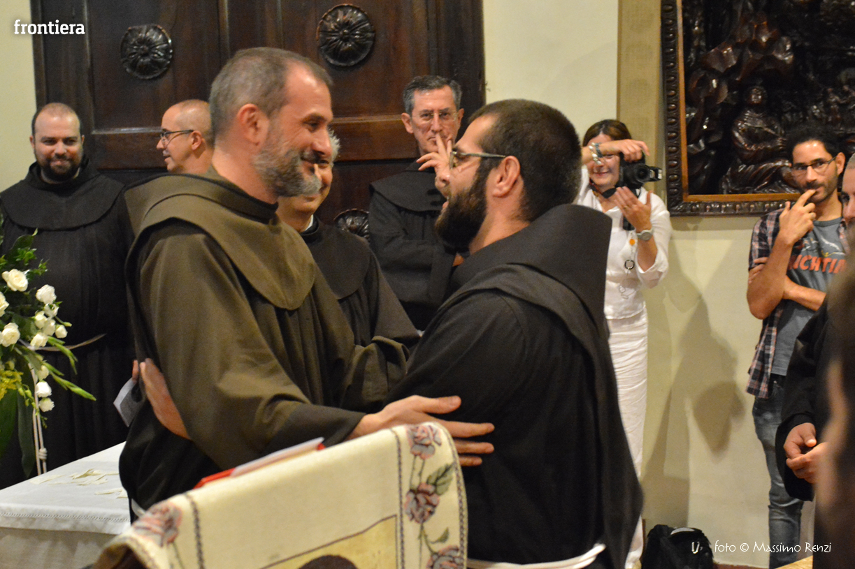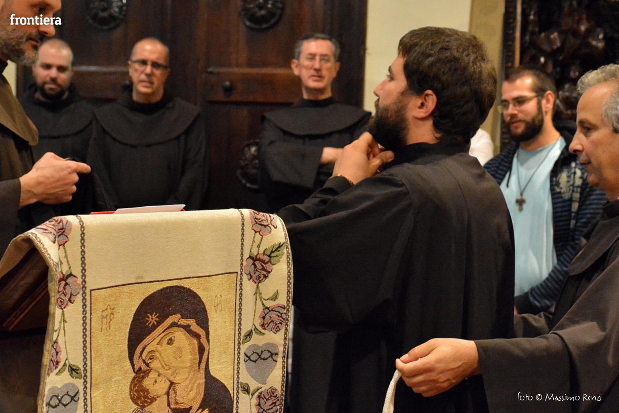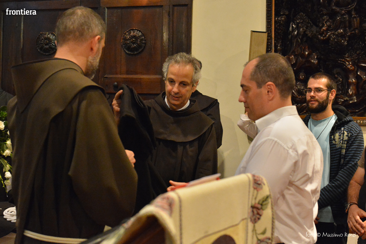 Per loro, mercoledì pomeriggio, il momento di saluto, con la cerimonia in cui hanno vestito il saio marrone stretto dal cordone, senza ancora i tre nodi (simboleggianti i voti religiosi di povertà, castità e obbedienza) che verranno inseriti, per quanti di loro persevereranno nel cammino, al momento della prima professione religiosa dopo l’anno di noviziato. Il rito è avvenuto nel contesto della celebrazione del Vespro, presieduto dal vescovo diocesano, presenti diversi frati dei santuari reatini e di altre località laziali e abruzzesi, alcuni parroci delle località di origine dei postulanti e le loro famiglie. In tanti, subito dopo, si sono uniti alla festa, partecipando al rinfresco organizzato dalla locale fraternità Ofs, per salutare i postulanti divenuti novizi, che poi l’indomani, dopo la Messa mattutina, sono partiti direttamente per La Verna: qui – sul «crudo sasso intra Tevero e Arno», per dirla con Dante, dove Frate Francesco «da Cristo prese l’ultimo sigillo» col dono delle stimmate – andrà avanti il loro itinerario che li porterà, a Dio piacendo, ad abbracciare la forma vitæ che il Poverello d’Assisi ha tracciato per quanti vogliano farsi come lui sposi di Madonna povertà.