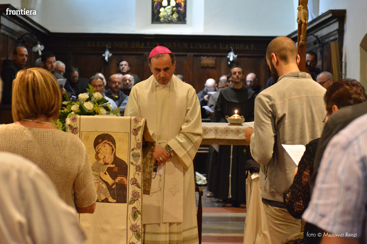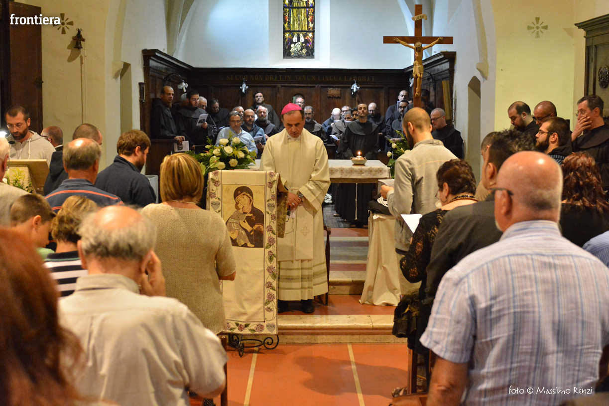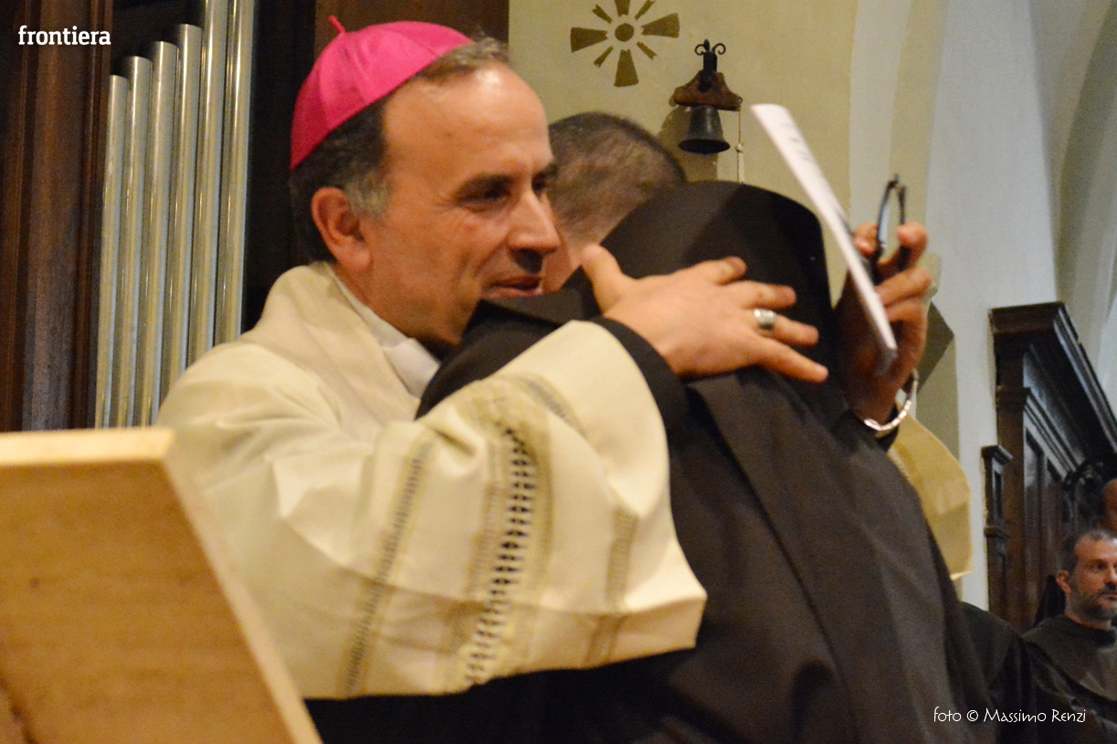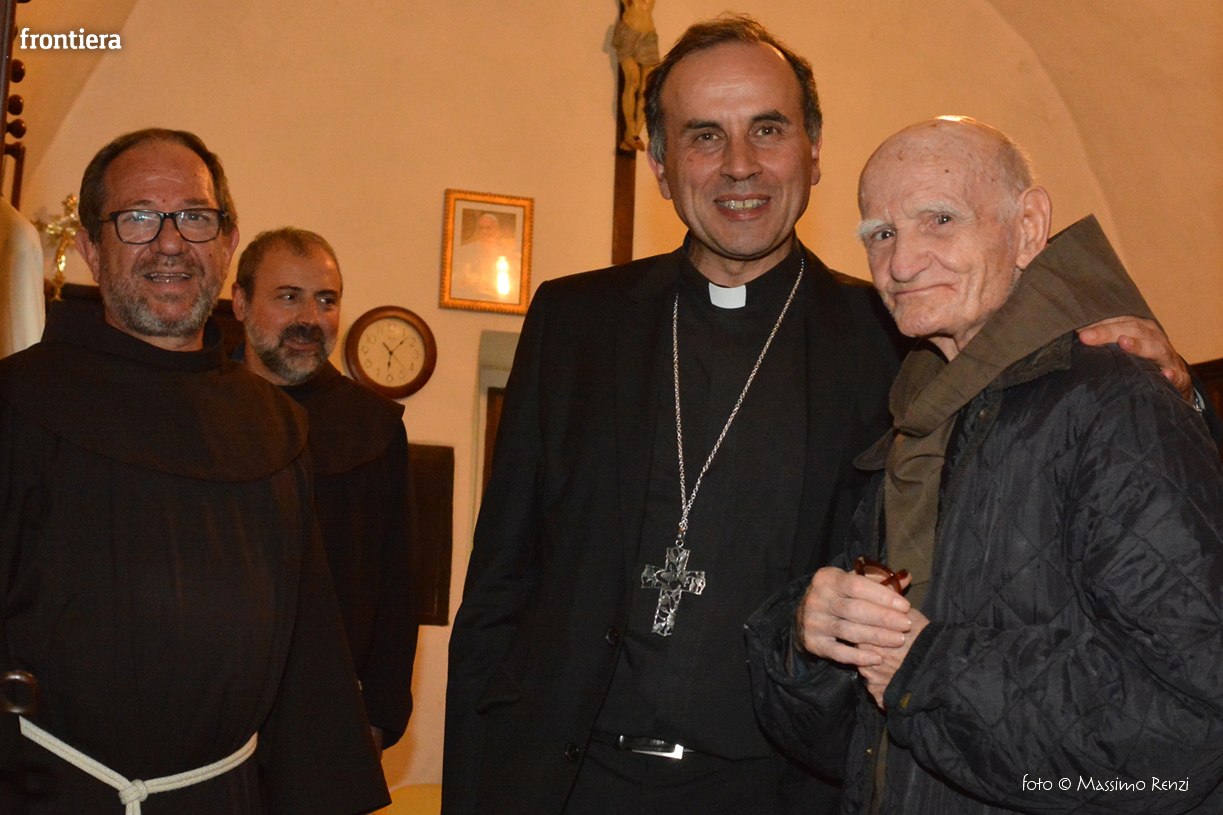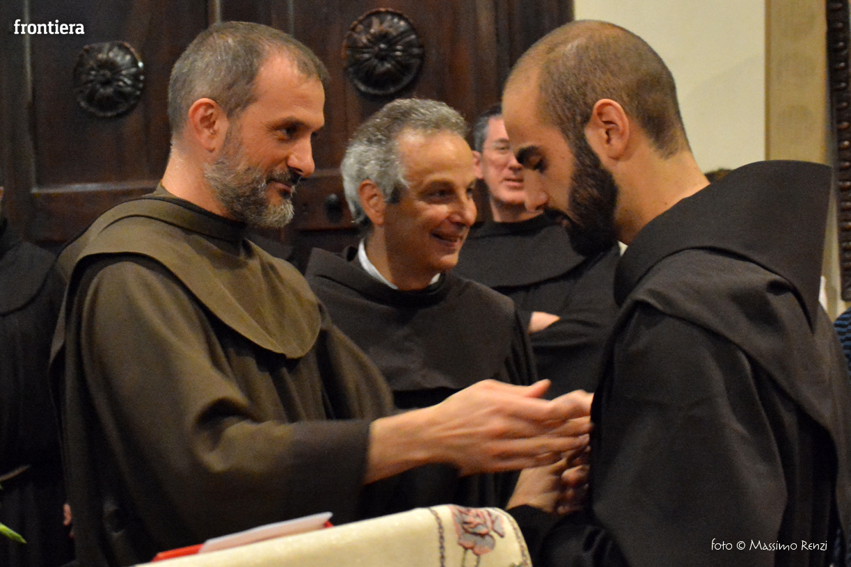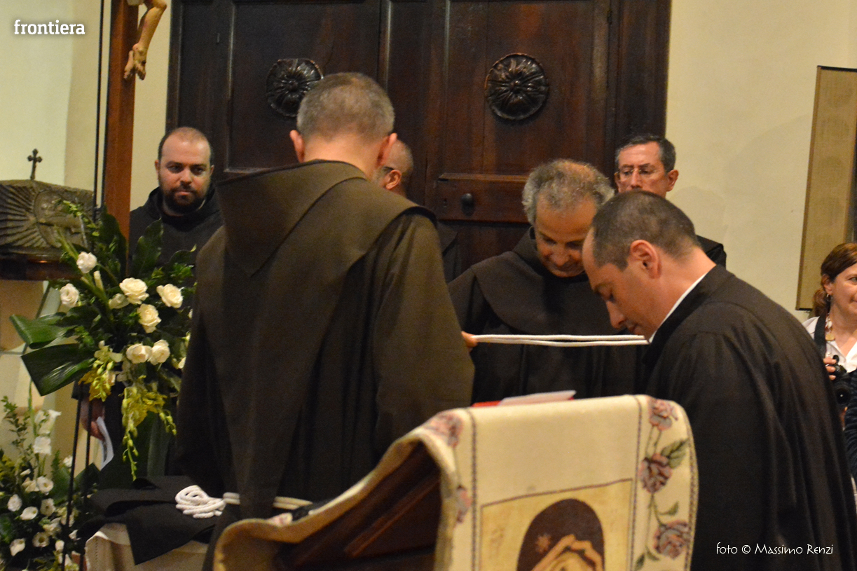 Per loro, mercoledì pomeriggio, il momento di saluto, con la cerimonia in cui hanno vestito il saio marrone stretto dal cordone, senza ancora i tre nodi (simboleggianti i voti religiosi di povertà, castità e obbedienza) che verranno inseriti, per quanti di loro persevereranno nel cammino, al momento della prima professione religiosa dopo l’anno di noviziato. Il rito è avvenuto nel contesto della celebrazione del Vespro, presieduto dal vescovo diocesano, presenti diversi frati dei santuari reatini e di altre località laziali e abruzzesi, alcuni parroci delle località di origine dei postulanti e le loro famiglie. In tanti, subito dopo, si sono uniti alla festa, partecipando al rinfresco organizzato dalla locale fraternità Ofs, per salutare i postulanti divenuti novizi, che poi l’indomani, dopo la Messa mattutina, sono partiti direttamente per La Verna: qui – sul «crudo sasso intra Tevero e Arno», per dirla con Dante, dove Frate Francesco «da Cristo prese l’ultimo sigillo» col dono delle stimmate – andrà avanti il loro itinerario che li porterà, a Dio piacendo, ad abbracciare la forma vitæ che il Poverello d’Assisi ha tracciato per quanti vogliano farsi come lui sposi di Madonna povertà.