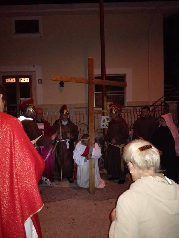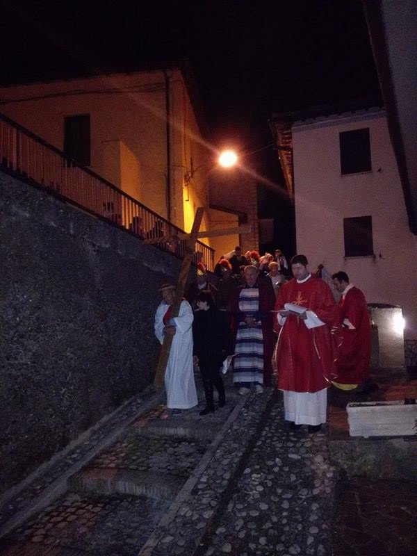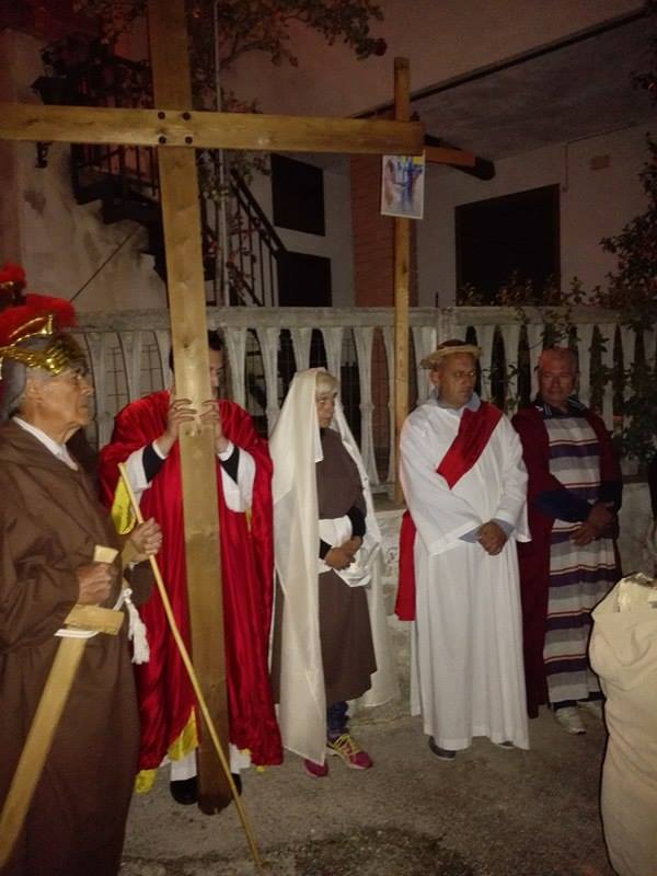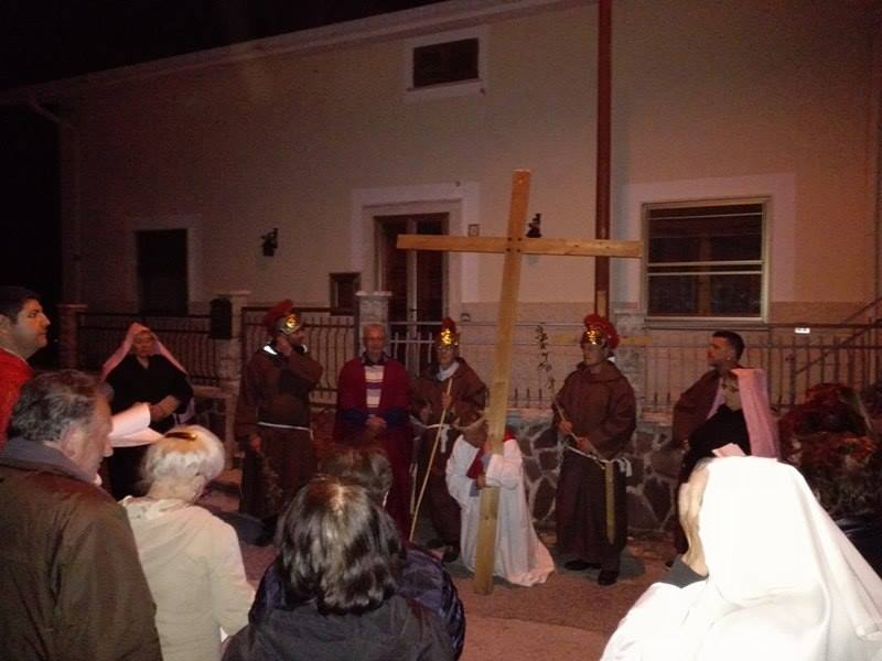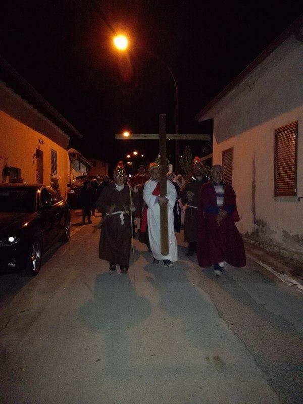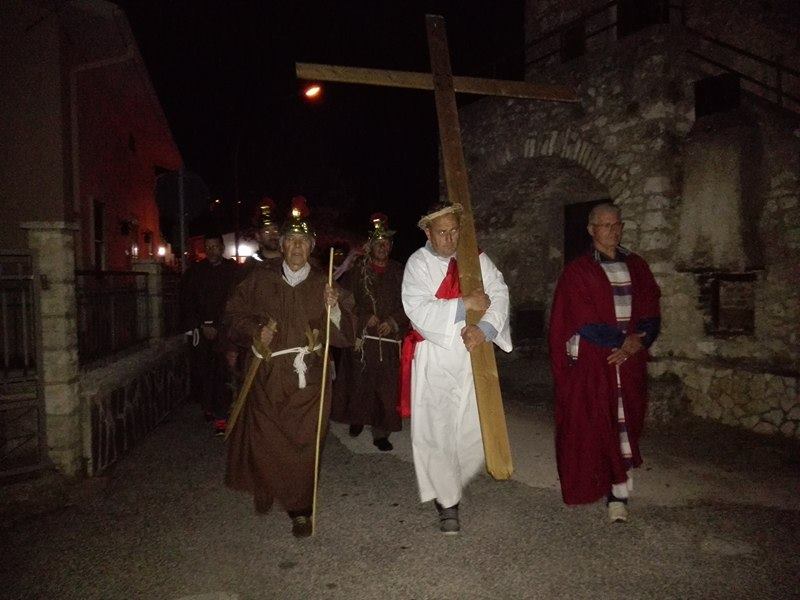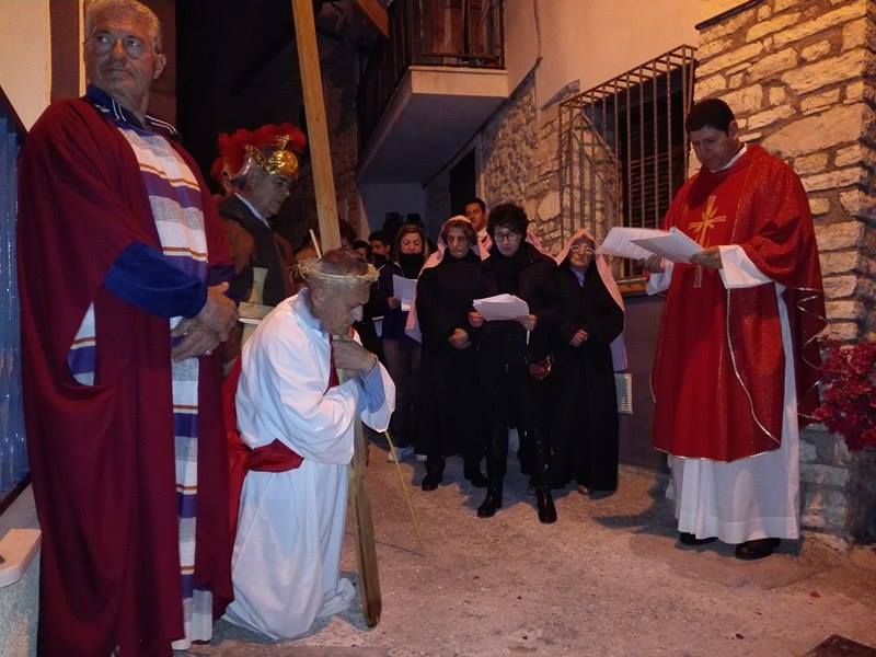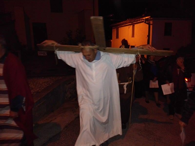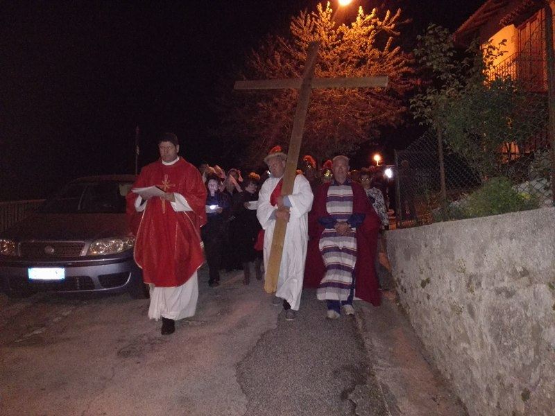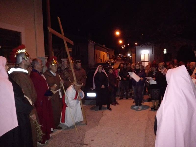 Nel suggestivo borgo di romana memoria, la devozione e la tradizione si incontrano. Ogni parrocchiano si è messo al servizio della comunità per dar vita alla tradizione della Via Crucis, durante la quale la tristezza e lo sgomento invadono i cuori di tutti: quel Cristo che dolorosamente ascende verso il Golgota, circondato da centurioni e da donne in lacrime, affiancato dalla Divina Madre Addolorata. Con i vicoli illuminati, la Sacra Rappresentazione, con le meditazioni dei più grandi Dottori della Chiesa, si è dimenata nella notte del Venerdì Santo. Una tradizione questa molto cara alla Parrocchia di San Michele Arcangelo in Apoleggia, che con Don Nicolae ha ripreso il suo vigore. Molti i partecipanti. Non sono mancate le lacrime per quel Salvatore martoriato. Canti popolari e fiaccole hanno arricchito il pio esercizio, conferendogli ancora più devozione e pathos.