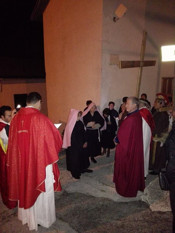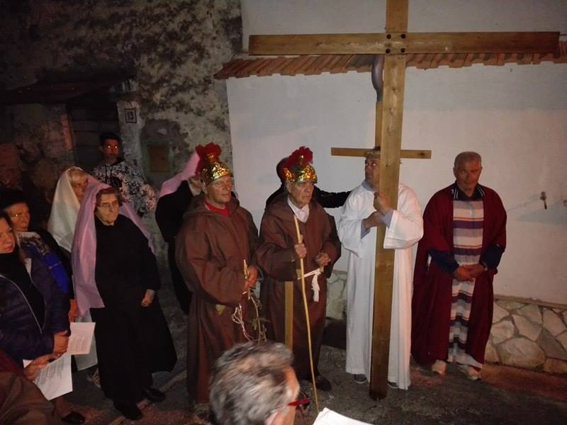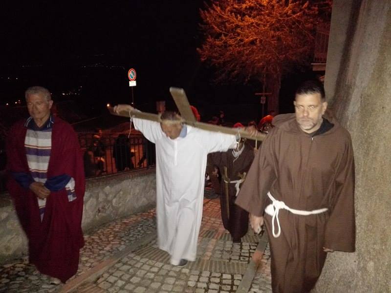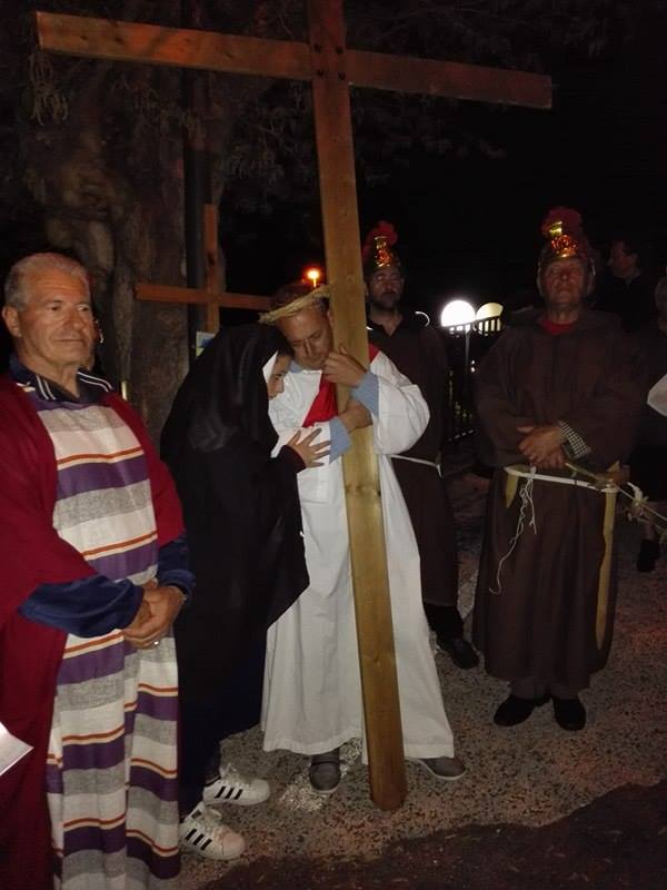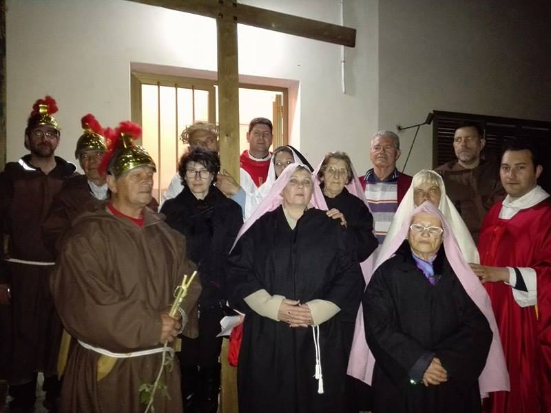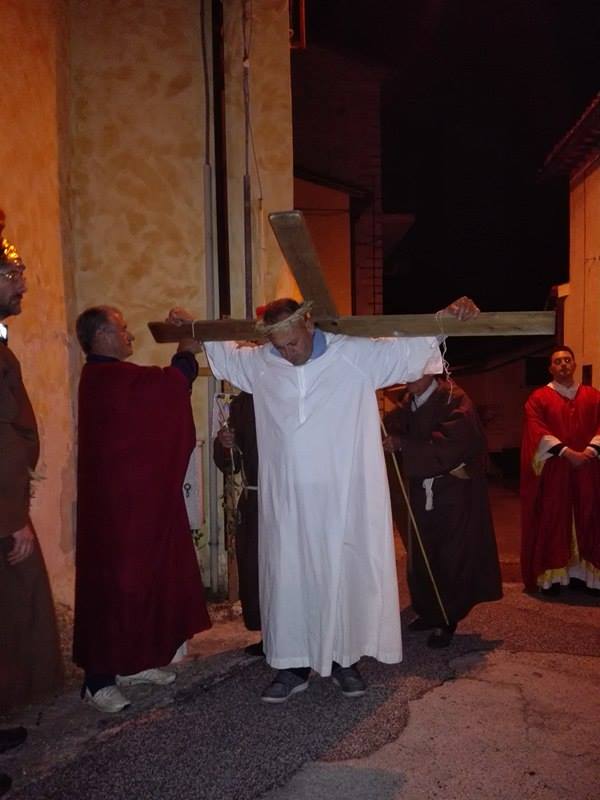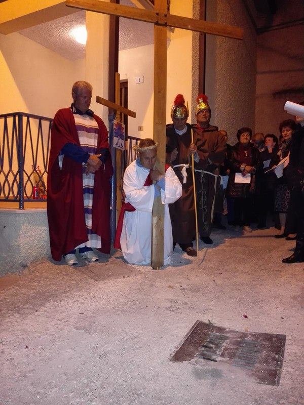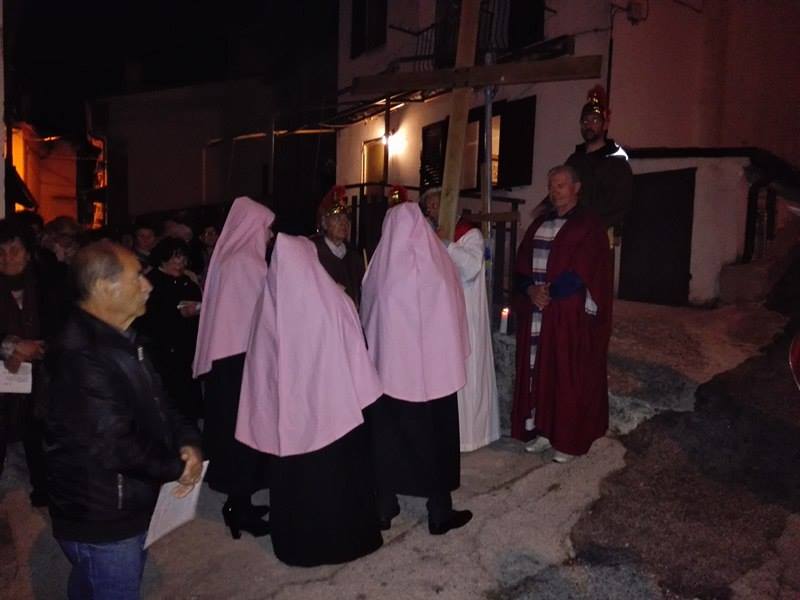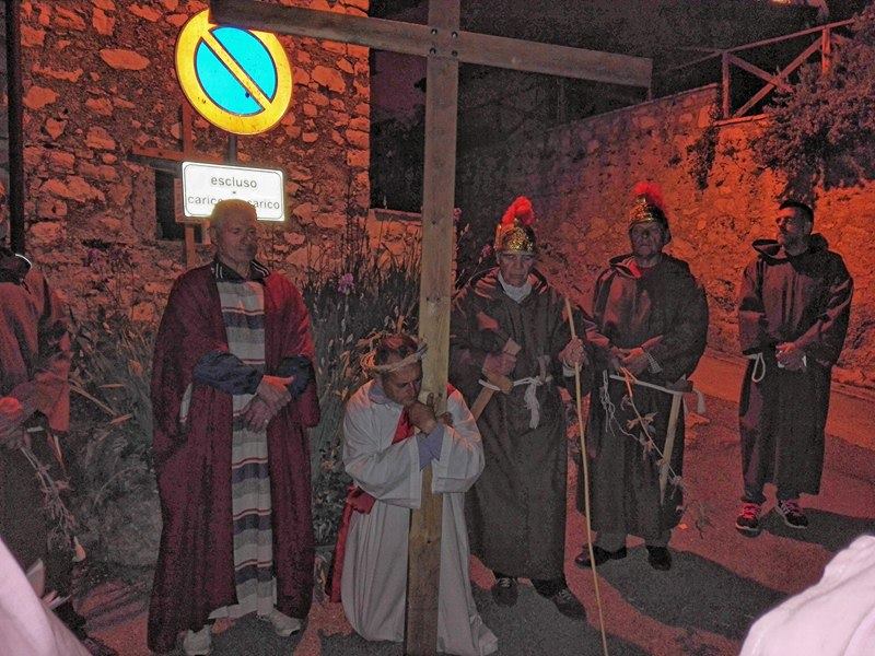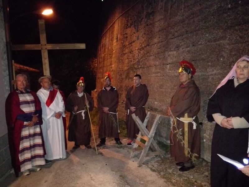 Nel suggestivo borgo di romana memoria, la devozione e la tradizione si incontrano. Ogni parrocchiano si è messo al servizio della comunità per dar vita alla tradizione della Via Crucis, durante la quale la tristezza e lo sgomento invadono i cuori di tutti: quel Cristo che dolorosamente ascende verso il Golgota, circondato da centurioni e da donne in lacrime, affiancato dalla Divina Madre Addolorata. Con i vicoli illuminati, la Sacra Rappresentazione, con le meditazioni dei più grandi Dottori della Chiesa, si è dimenata nella notte del Venerdì Santo. Una tradizione questa molto cara alla Parrocchia di San Michele Arcangelo in Apoleggia, che con Don Nicolae ha ripreso il suo vigore. Molti i partecipanti. Non sono mancate le lacrime per quel Salvatore martoriato. Canti popolari e fiaccole hanno arricchito il pio esercizio, conferendogli ancora più devozione e pathos.