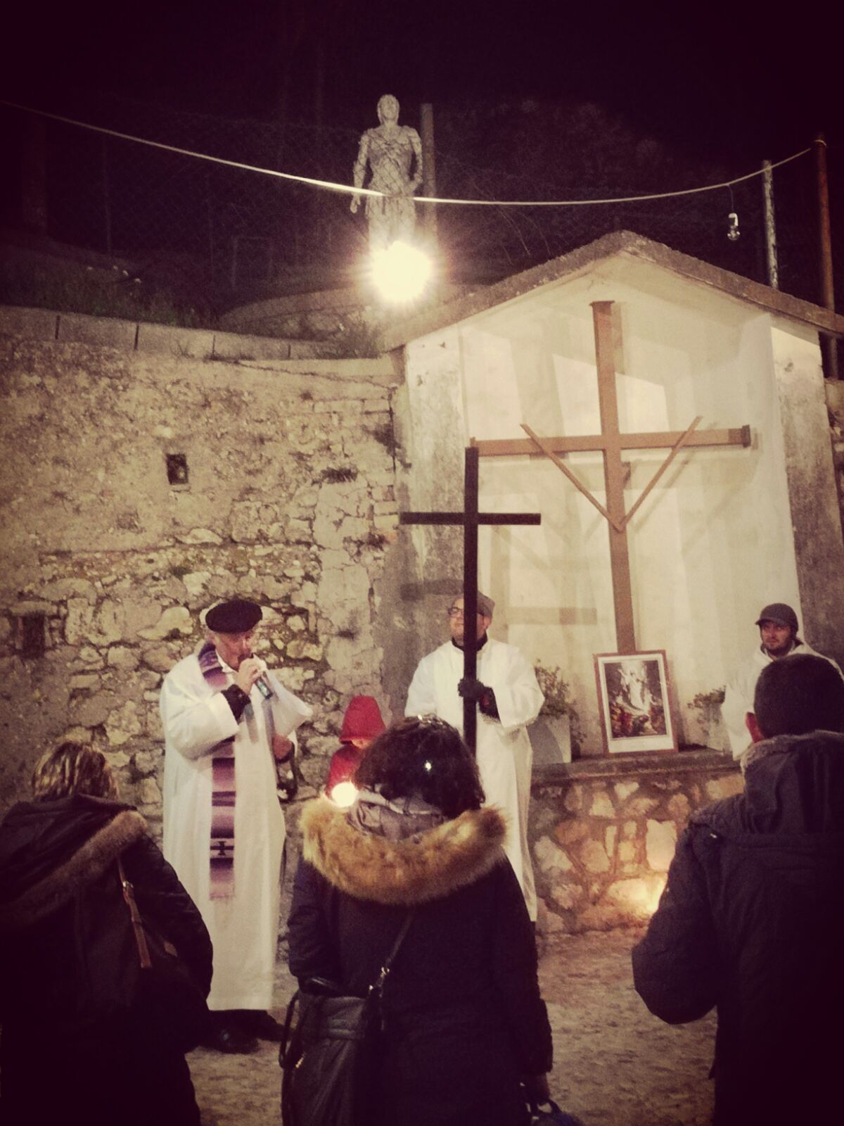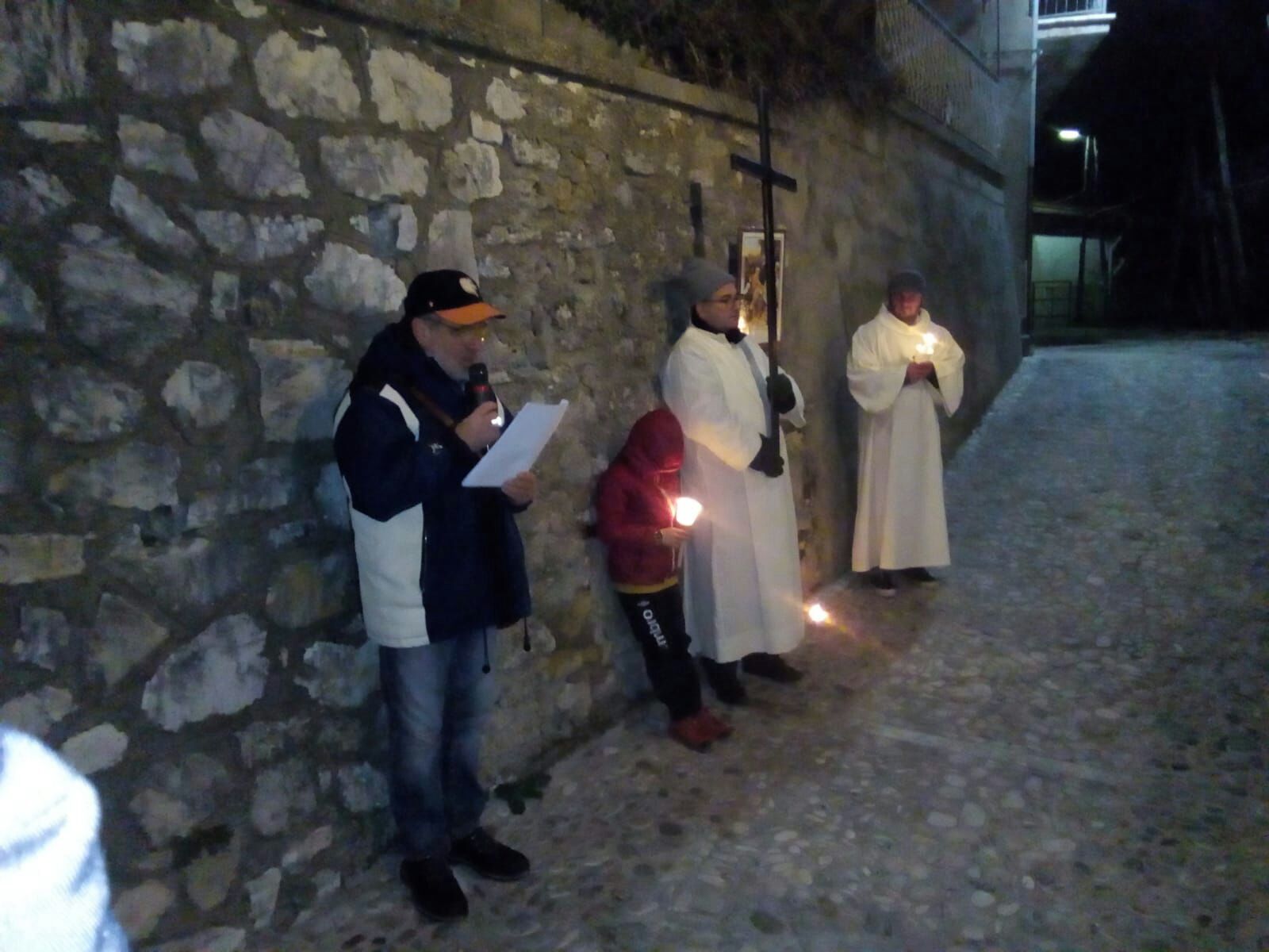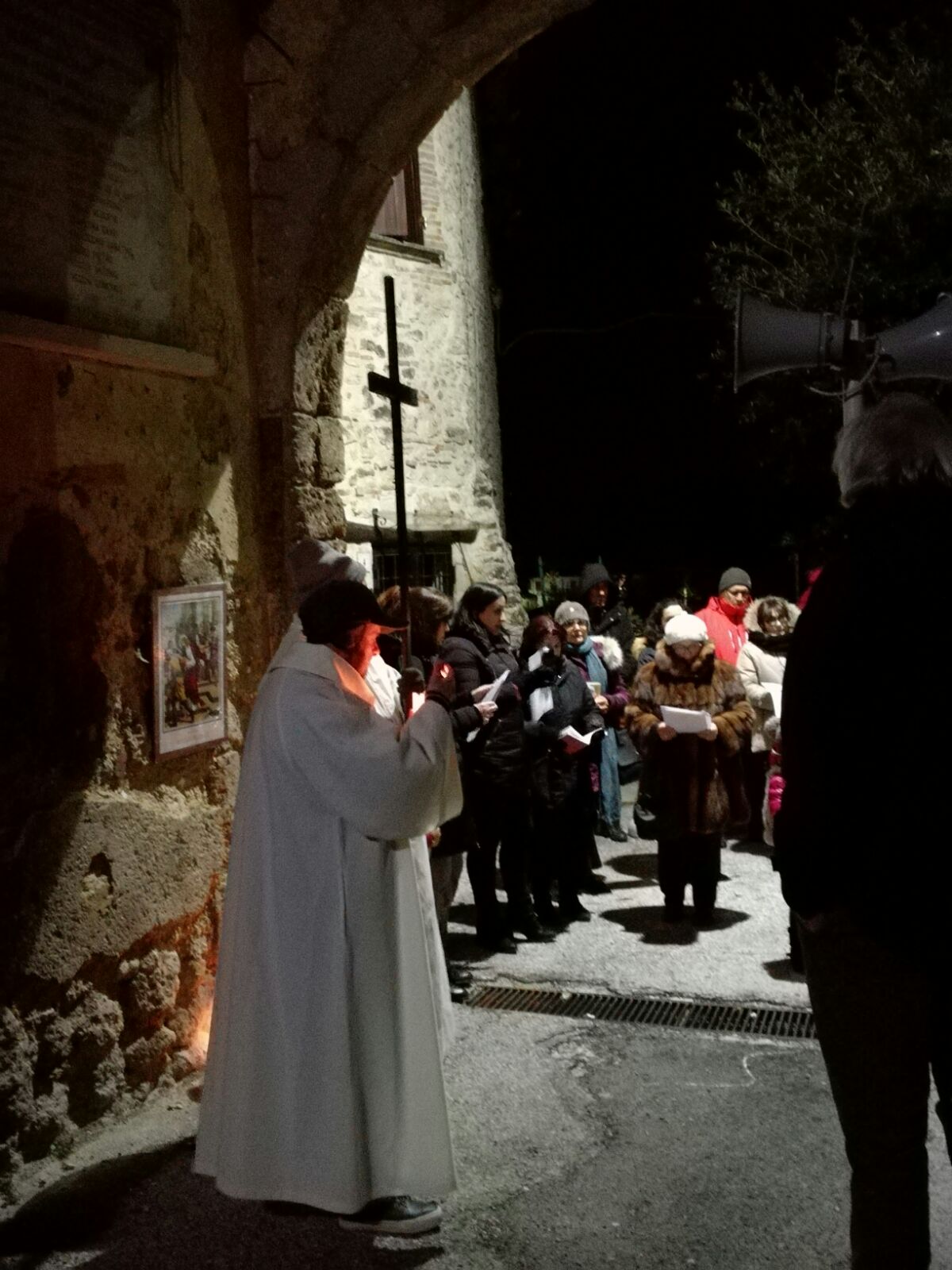 L’occasione ha visto la presenza di un nutrito gruppo di fedeli provenienti da tutte le frazioni che compongono l’estesa parrocchia Santa Maria delle Grazie: Lisciano, Lugnano, Coccodrillo, Cupaello, Madonna del Passo, Castelfranco e Vazia. Nella fredda notte stellata i cuori hanno battuto all’unisono nell’ascolto della Parola di Dio, nella devota esecuzione delle preghiere e dei canti della tradizione e nell’ascolto delle icone drammatiche raffiguranti le tante croci che segnano il cammino dell’esistenza odierna.