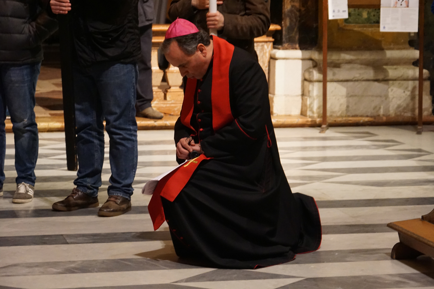 «Per vivere la bellezza dell’amore, è inutile negarlo, occorre anche passare dalla croce, perché per poter dire di sì a qualcuno, spesso bisogna saper dire di no a se stesso. Per questo, imparare ad amare non è mai un’impresa definitivamente compiuta». Al termine della Via Crucis del Venerdì Santo, svolta all’interno della Basilica Cattedrale di Santa Maria, mons Pompili ha rivolto la sua riflessione al significato dell’amore, anche fisico. «Il sesso – ha notato il vescovo – è salito al cervello di tutti e complice la tecnologia rischiamo di essere dentro un vortice che mortifica l’espressione corporea dell’amore. Si moltiplicano i femminicidi, magari dopo aver consumato un rapporto, ma ancor prima si registra una serie di violenze che ignorano la persona e la riducono ad un oggetto».