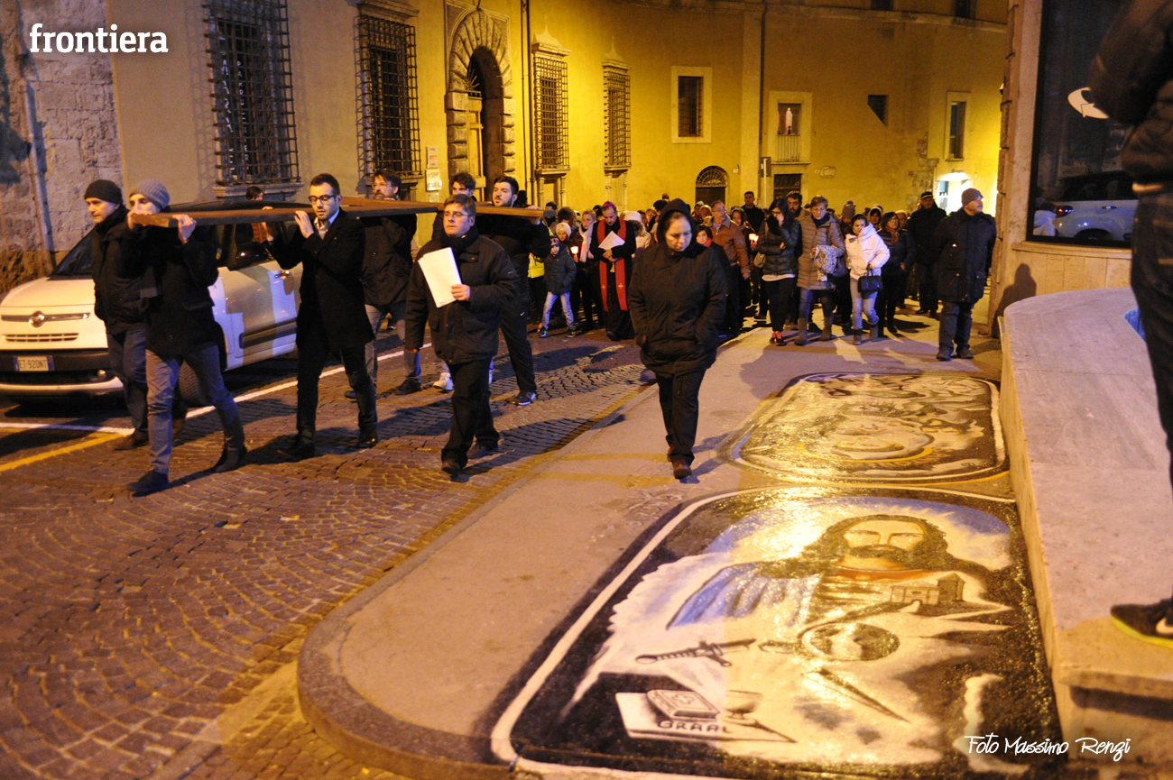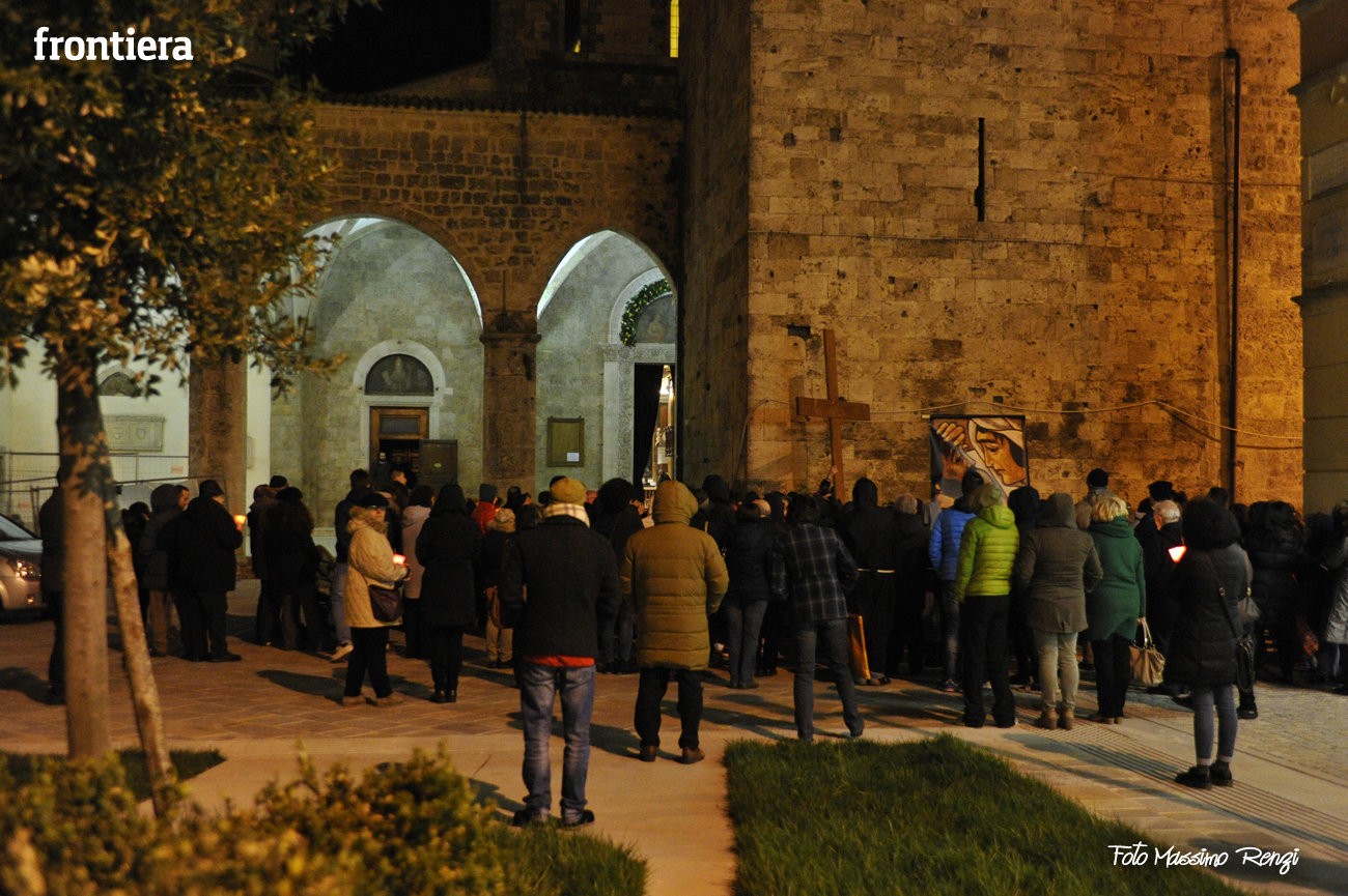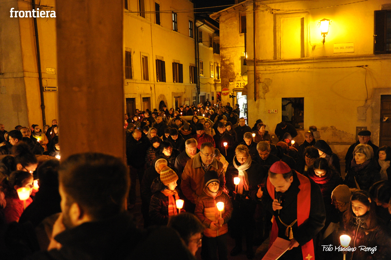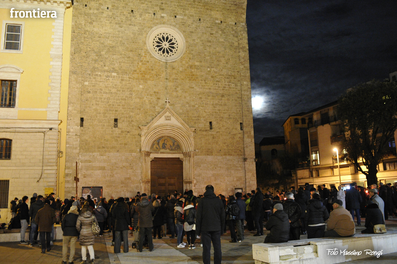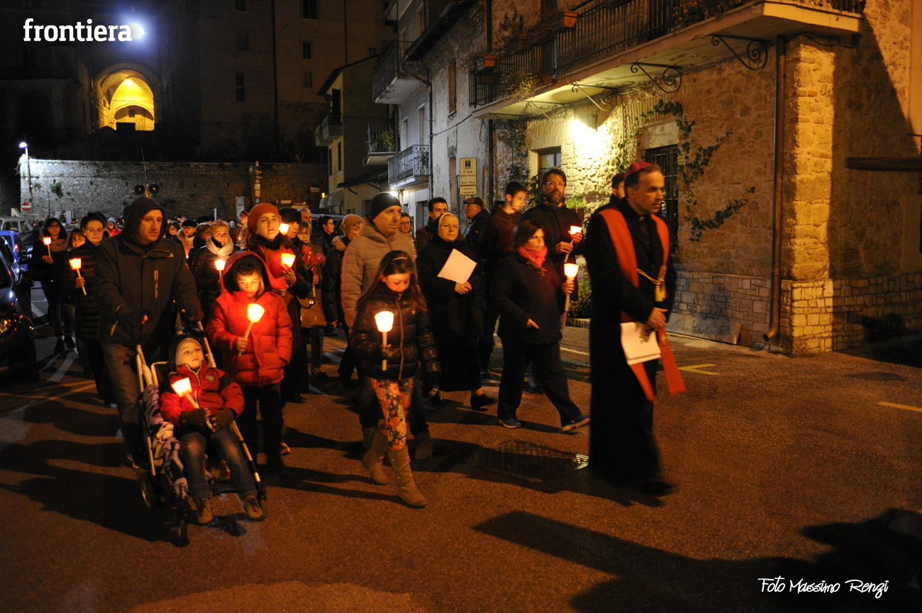 Si è tenuta nel centro storico di Rieti nella sera del Venerdì Santo una Via Crucis, presieduta dal vescovo Domenico, alla quale hanno partecipato tutte le parrocchie della vicaria. Partito dalla chiesa di San Pietro Martire, il pio esercizio ha attraversato tutti i quartieri intra moenia, raccogliendo un crescente numero di fedeli ad ogni stazione. Una moltitudine che si è infine raccolta in Cattedrale, dove ha ascoltato la parola del vescovo e ricevuto la benedizione.