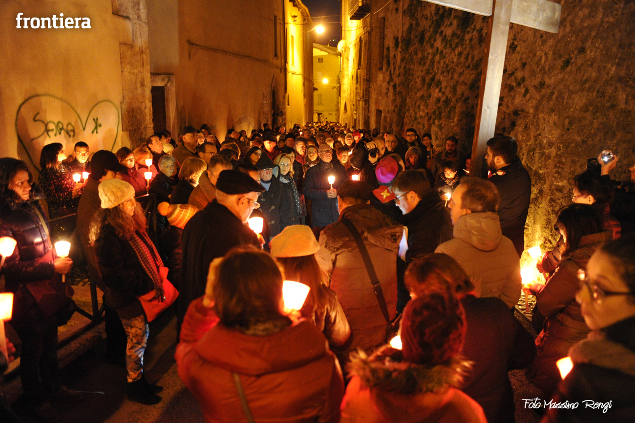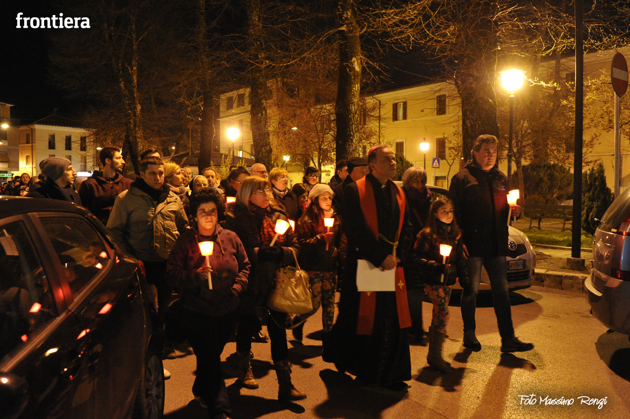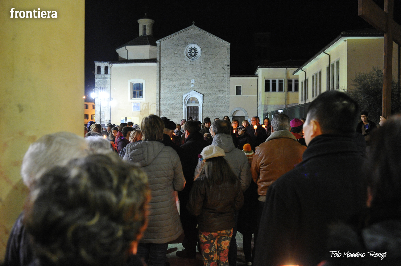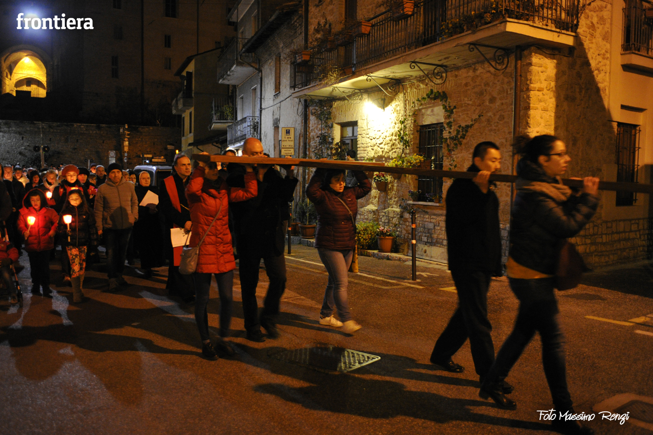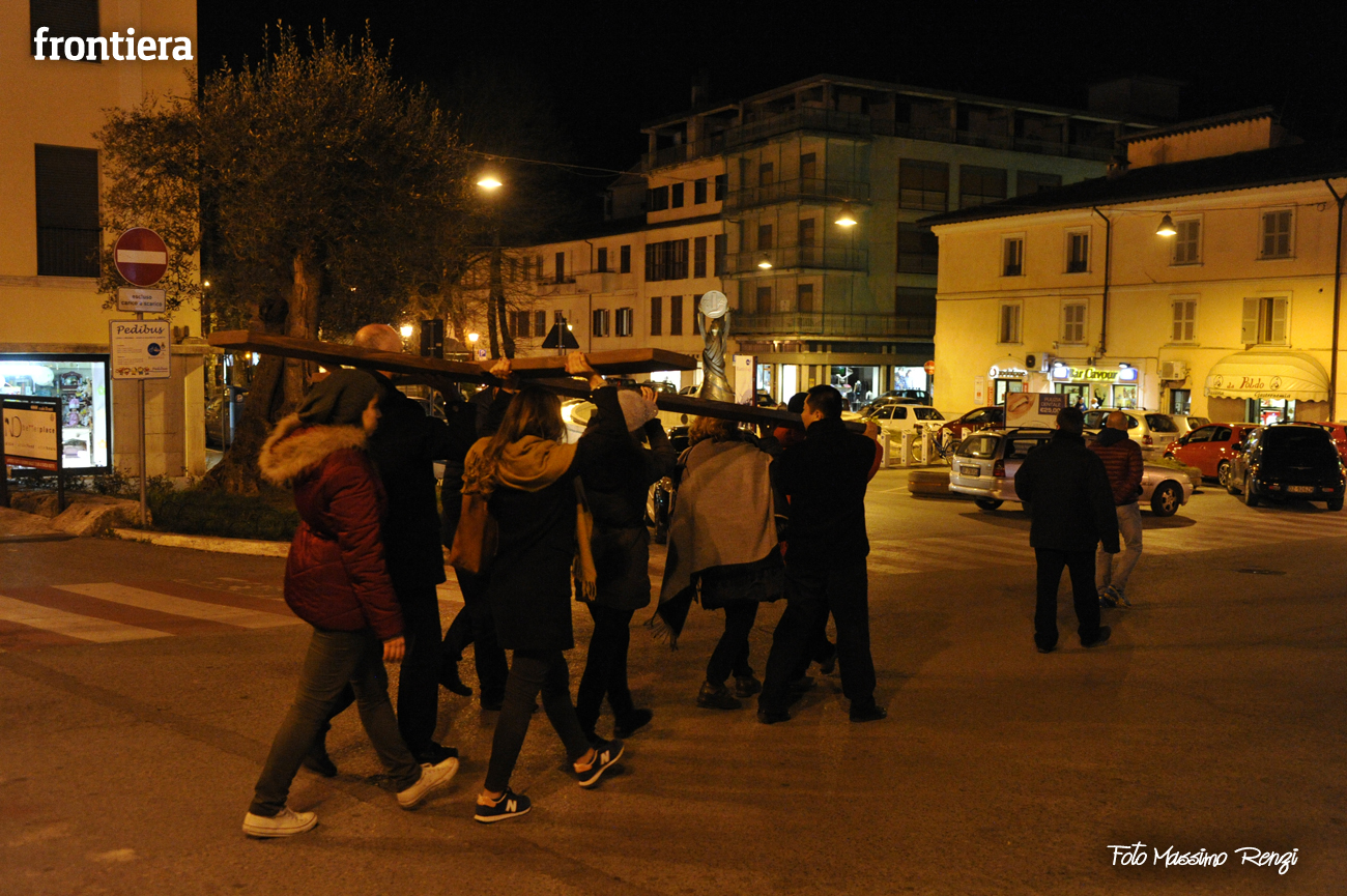 Si è tenuta nel centro storico di Rieti nella sera del Venerdì Santo una Via Crucis, presieduta dal vescovo Domenico, alla quale hanno partecipato tutte le parrocchie della vicaria. Partito dalla chiesa di San Pietro Martire, il pio esercizio ha attraversato tutti i quartieri intra moenia, raccogliendo un crescente numero di fedeli ad ogni stazione. Una moltitudine che si è infine raccolta in Cattedrale, dove ha ascoltato la parola del vescovo e ricevuto la benedizione.