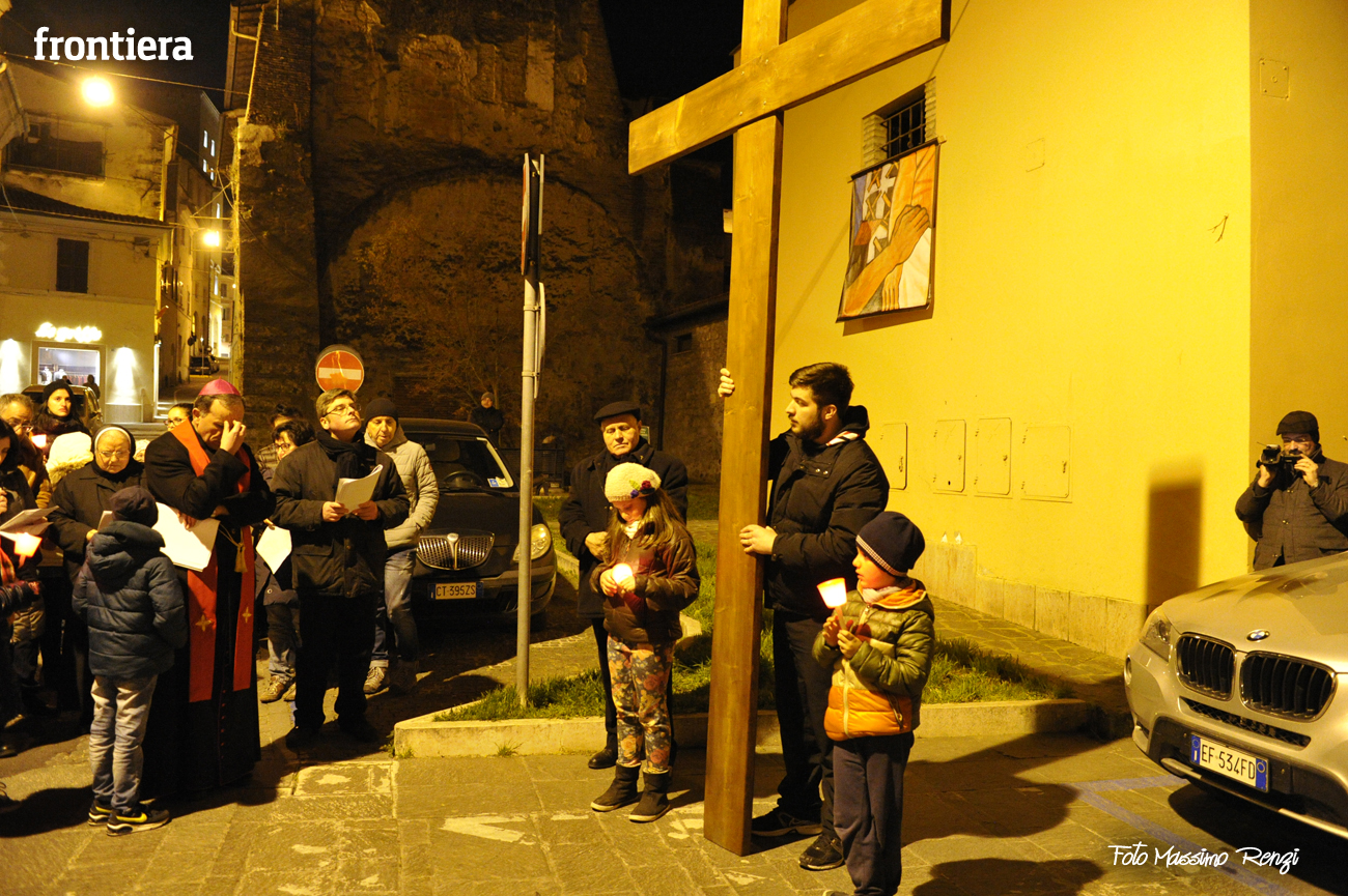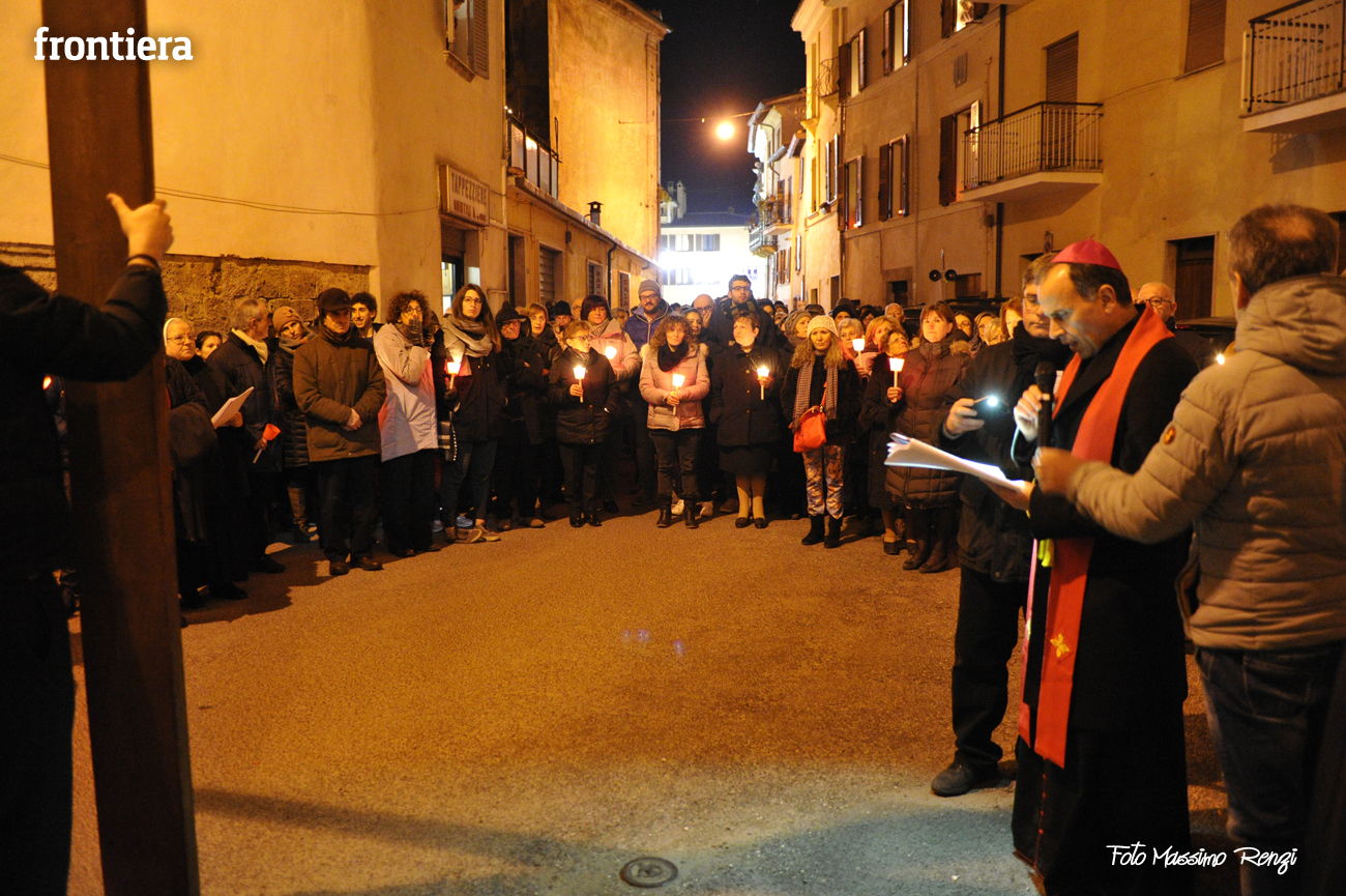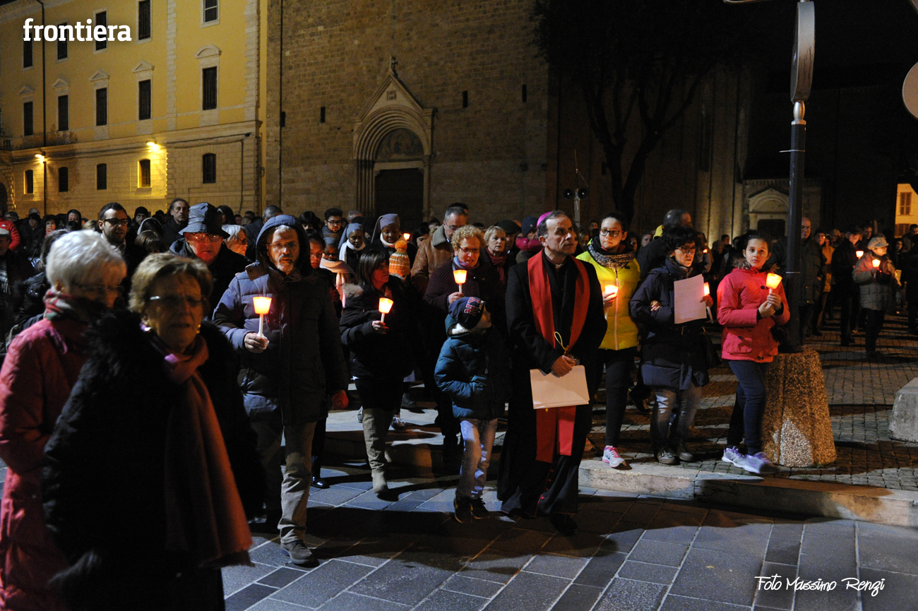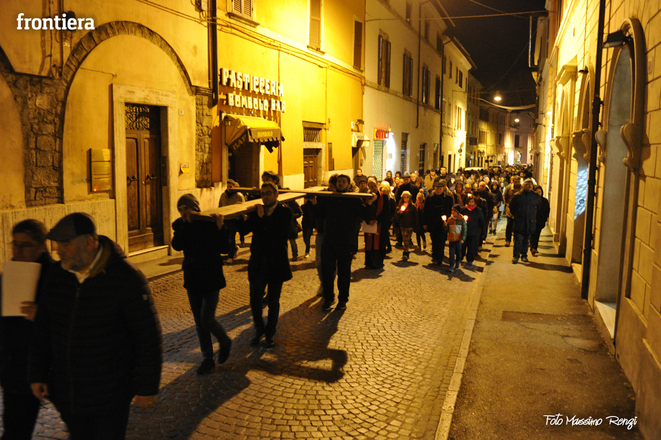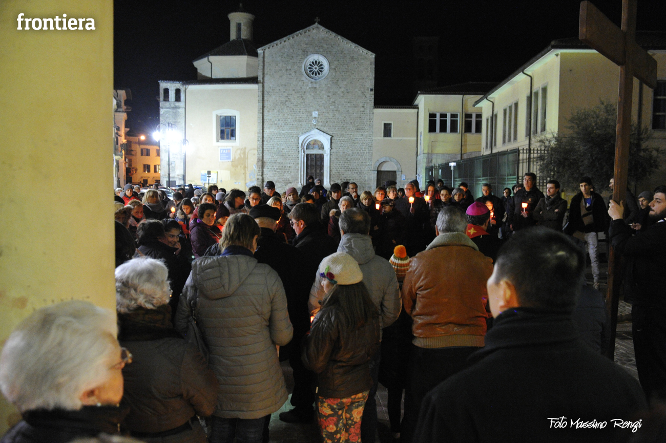 Si è tenuta nel centro storico di Rieti nella sera del Venerdì Santo una Via Crucis, presieduta dal vescovo Domenico, alla quale hanno partecipato tutte le parrocchie della vicaria. Partito dalla chiesa di San Pietro Martire, il pio esercizio ha attraversato tutti i quartieri intra moenia, raccogliendo un crescente numero di fedeli ad ogni stazione. Una moltitudine che si è infine raccolta in Cattedrale, dove ha ascoltato la parola del vescovo e ricevuto la benedizione.