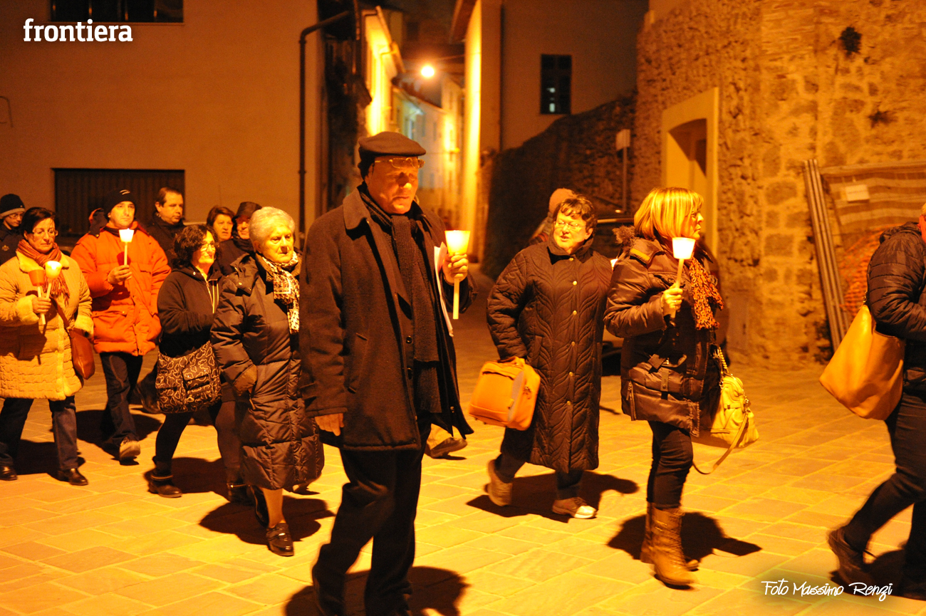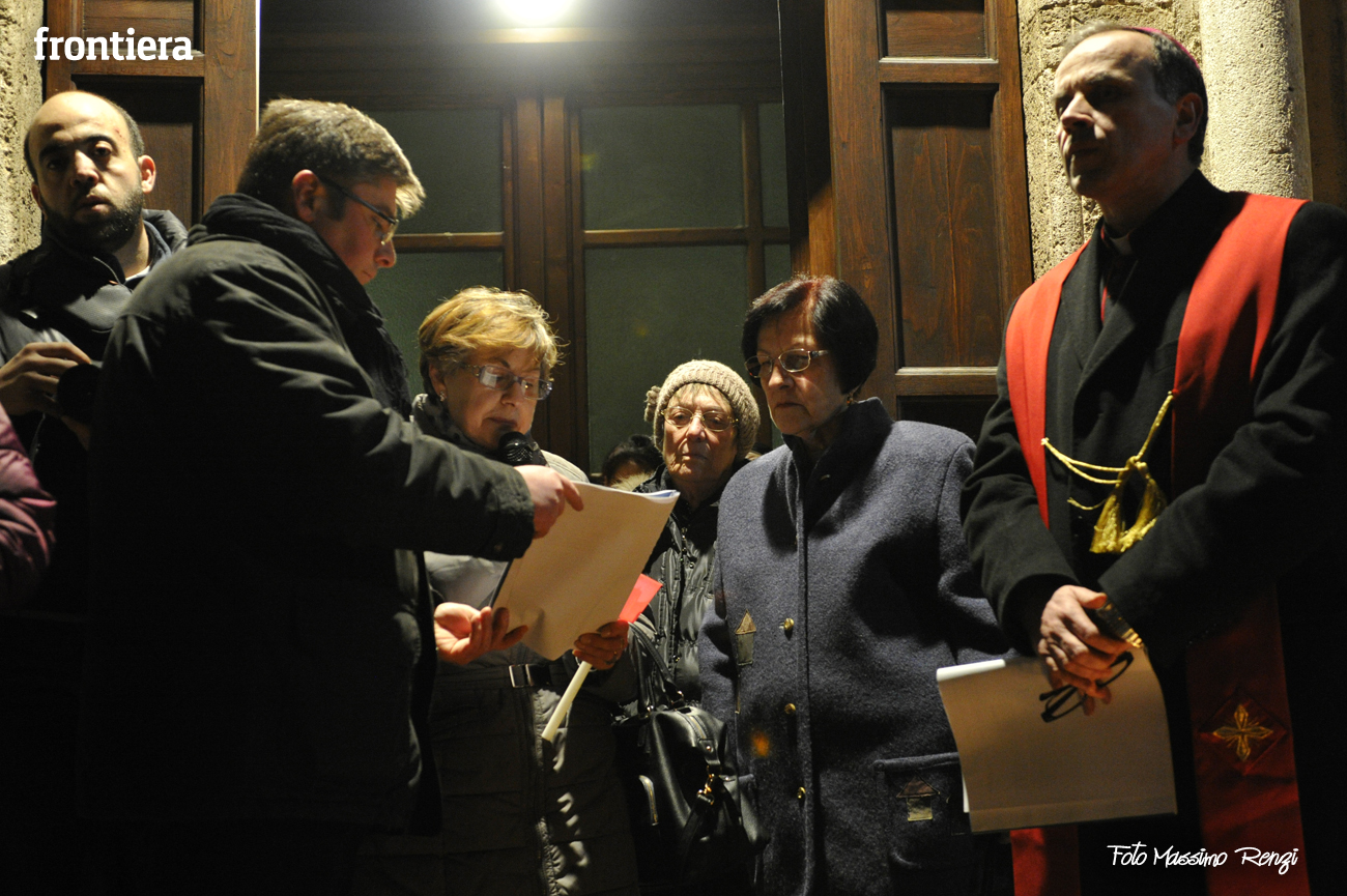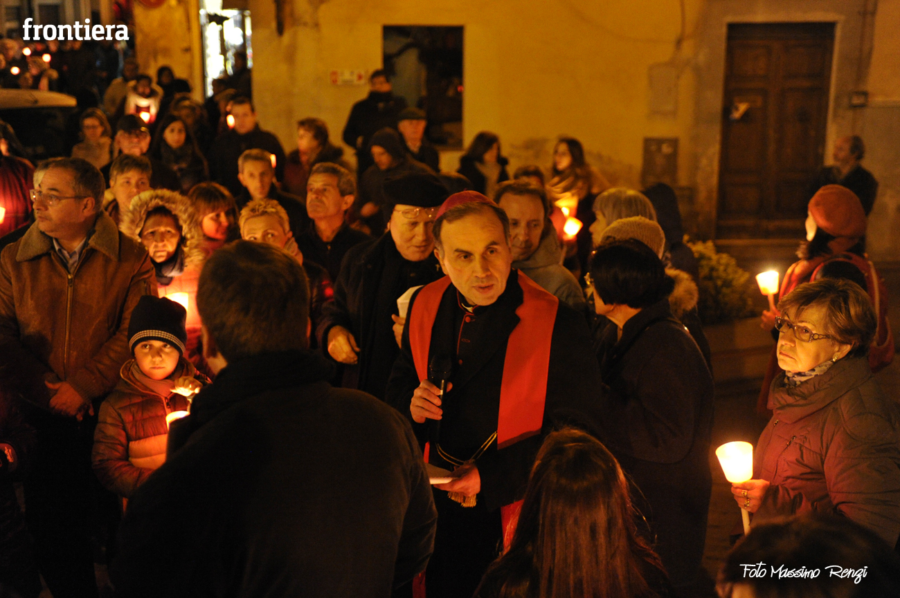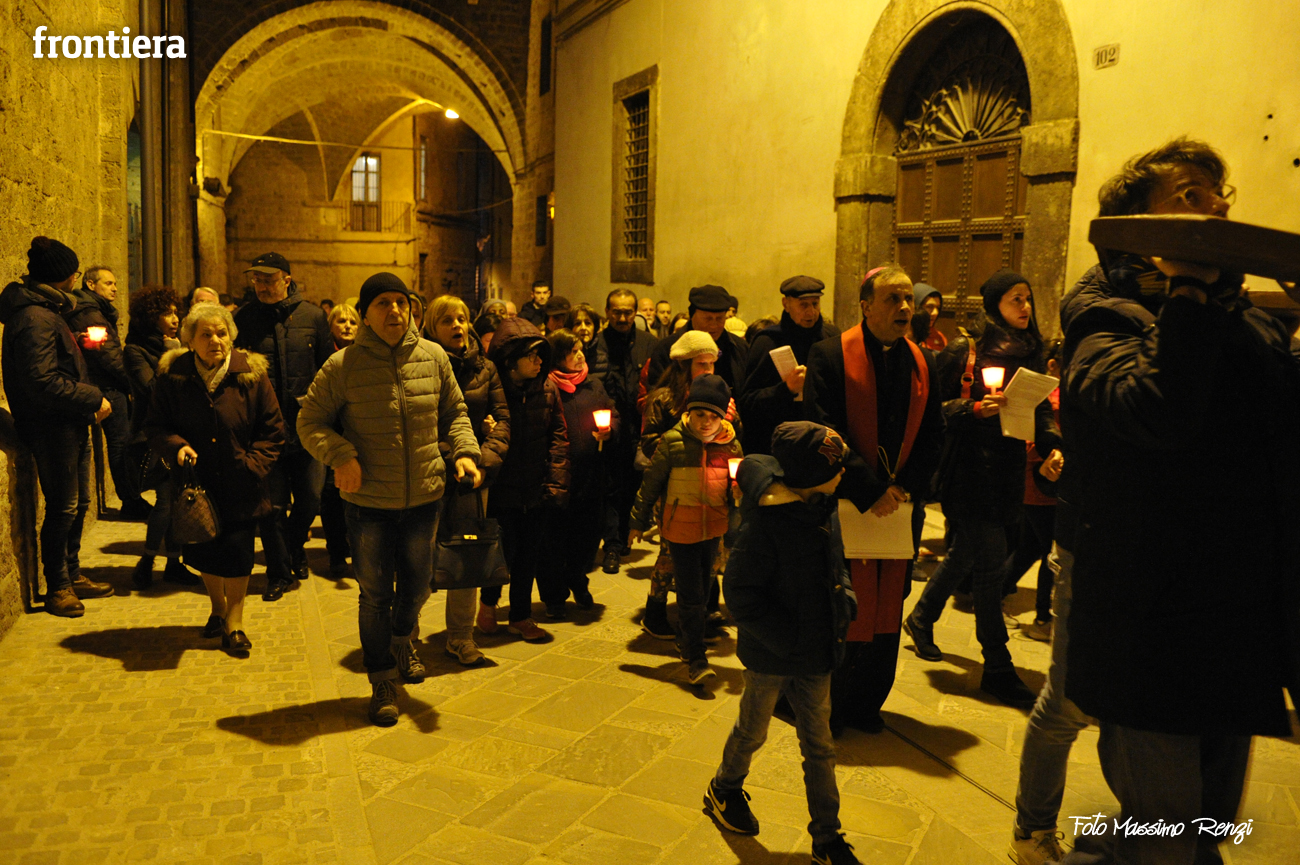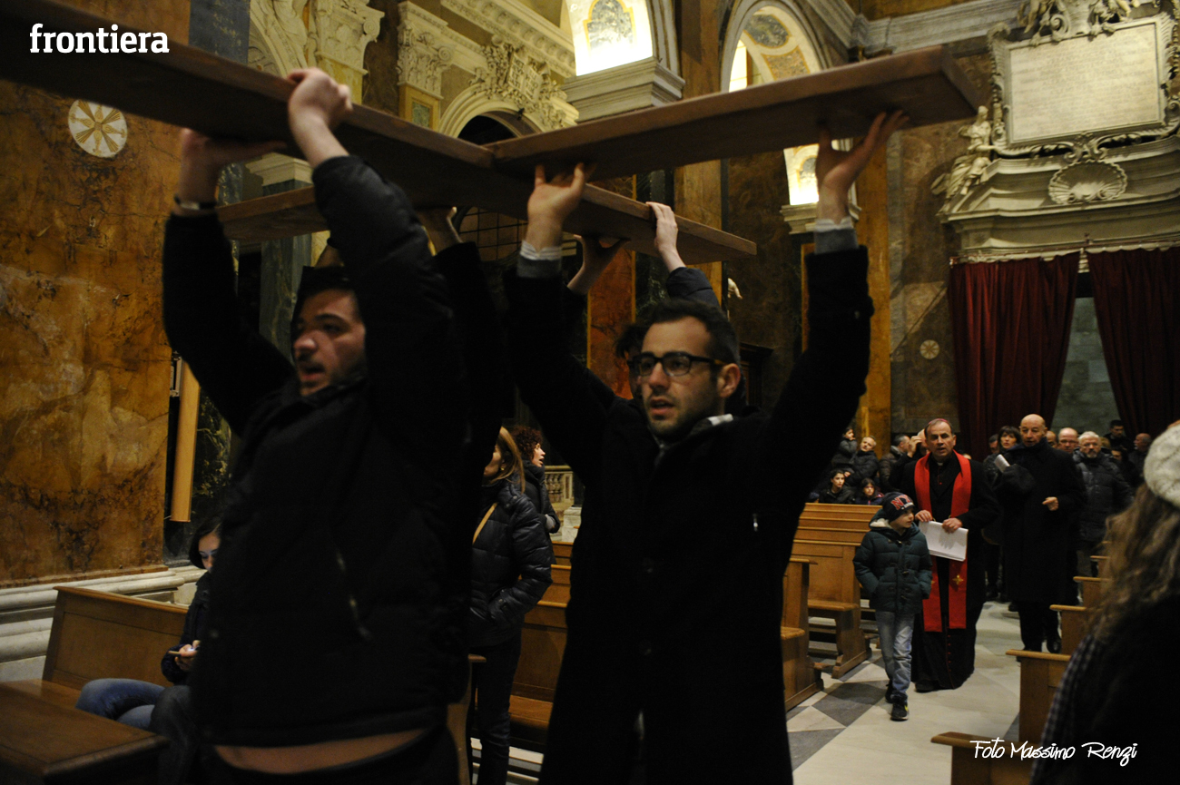 Si è tenuta nel centro storico di Rieti nella sera del Venerdì Santo una Via Crucis, presieduta dal vescovo Domenico, alla quale hanno partecipato tutte le parrocchie della vicaria. Partito dalla chiesa di San Pietro Martire, il pio esercizio ha attraversato tutti i quartieri intra moenia, raccogliendo un crescente numero di fedeli ad ogni stazione. Una moltitudine che si è infine raccolta in Cattedrale, dove ha ascoltato la parola del vescovo e ricevuto la benedizione.