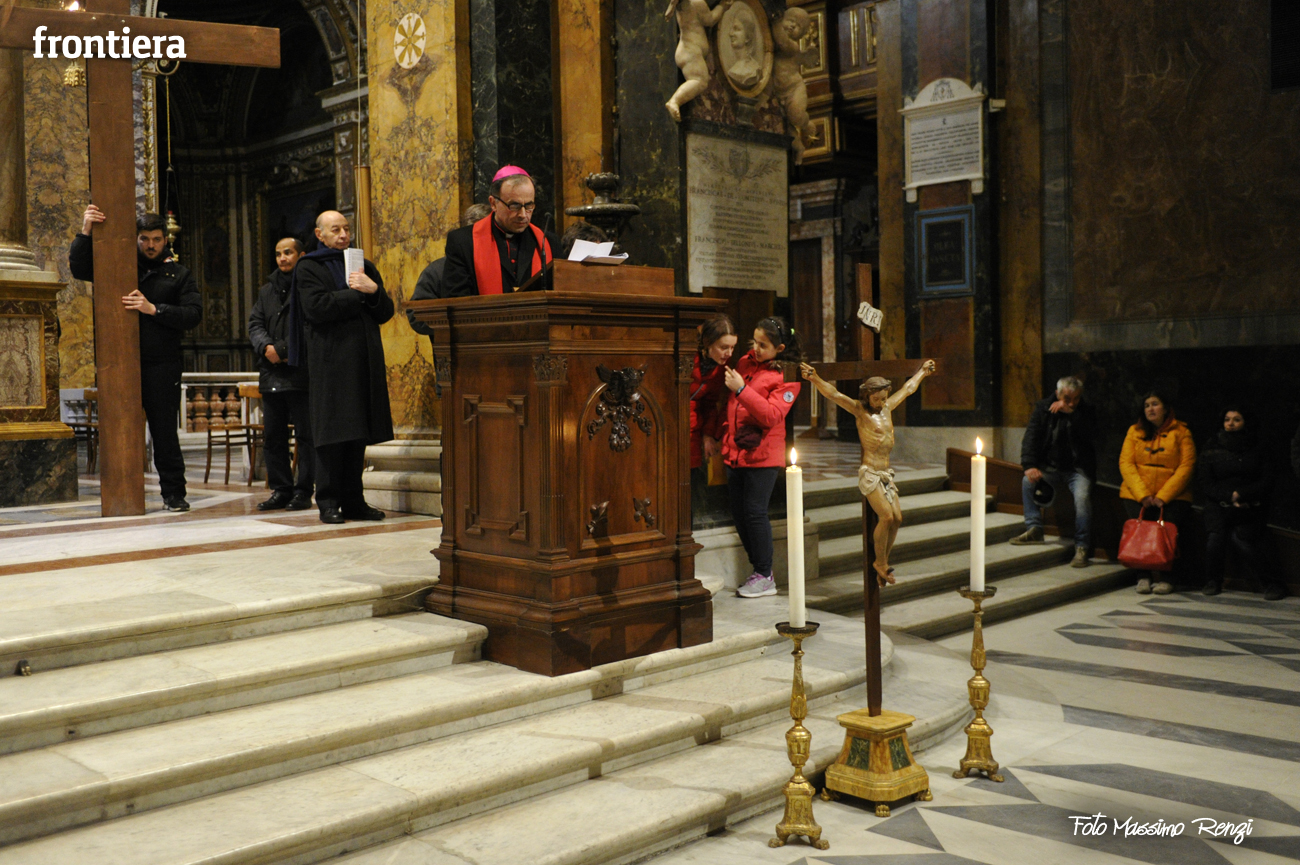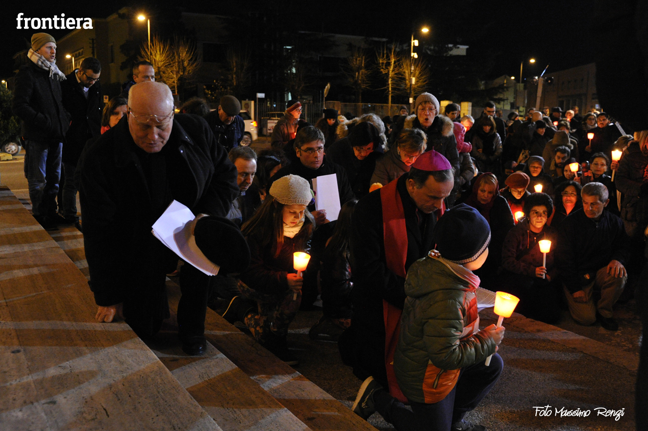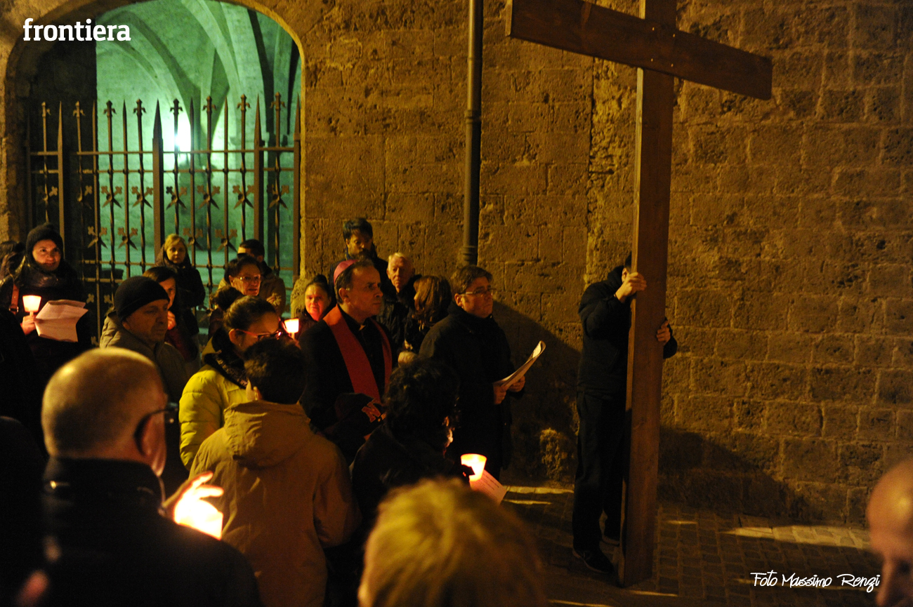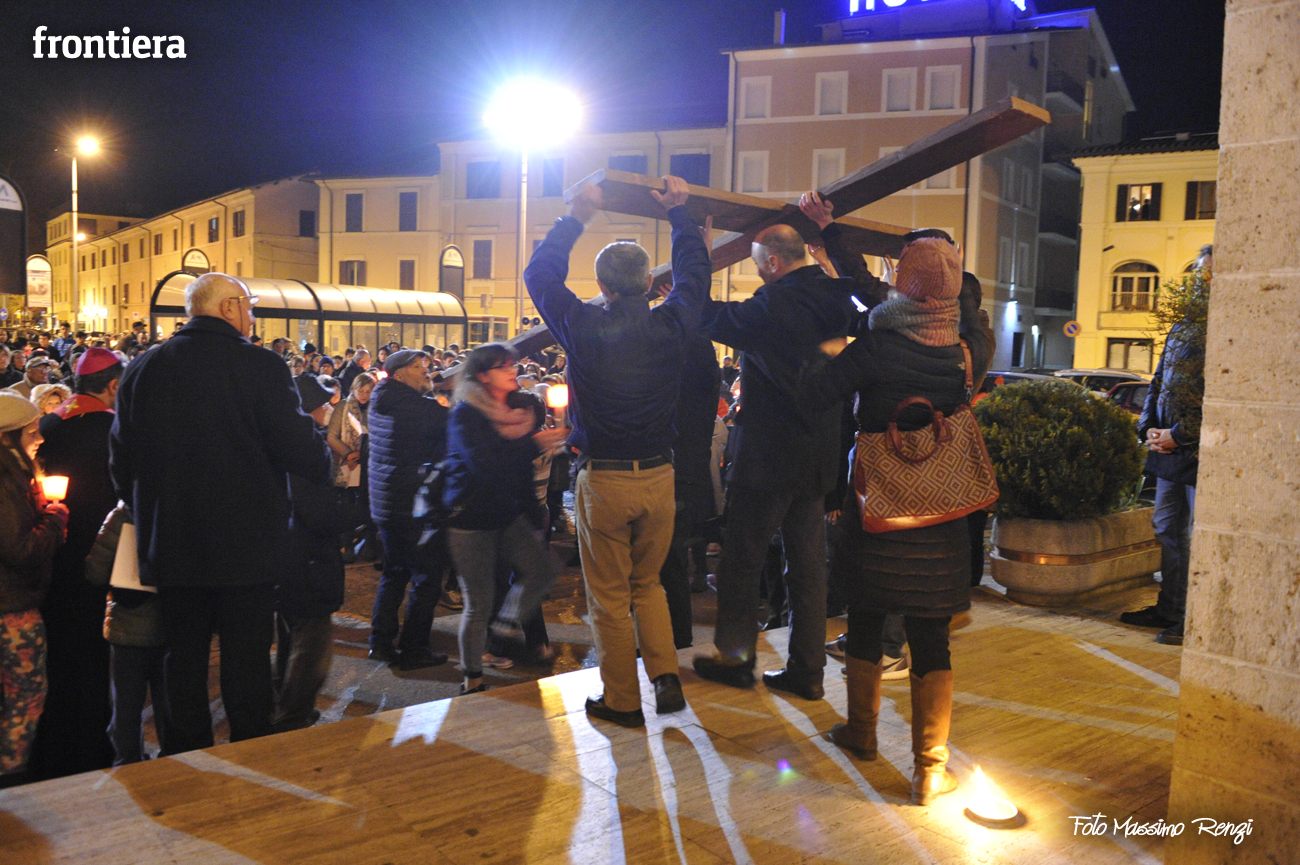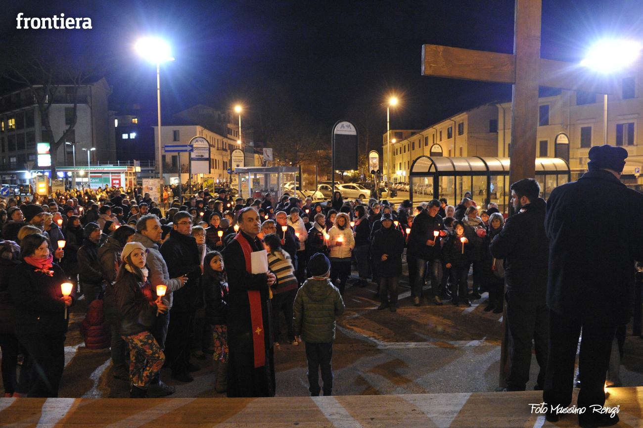 Si è tenuta nel centro storico di Rieti nella sera del Venerdì Santo una Via Crucis, presieduta dal vescovo Domenico, alla quale hanno partecipato tutte le parrocchie della vicaria. Partito dalla chiesa di San Pietro Martire, il pio esercizio ha attraversato tutti i quartieri intra moenia, raccogliendo un crescente numero di fedeli ad ogni stazione. Una moltitudine che si è infine raccolta in Cattedrale, dove ha ascoltato la parola del vescovo e ricevuto la benedizione.
