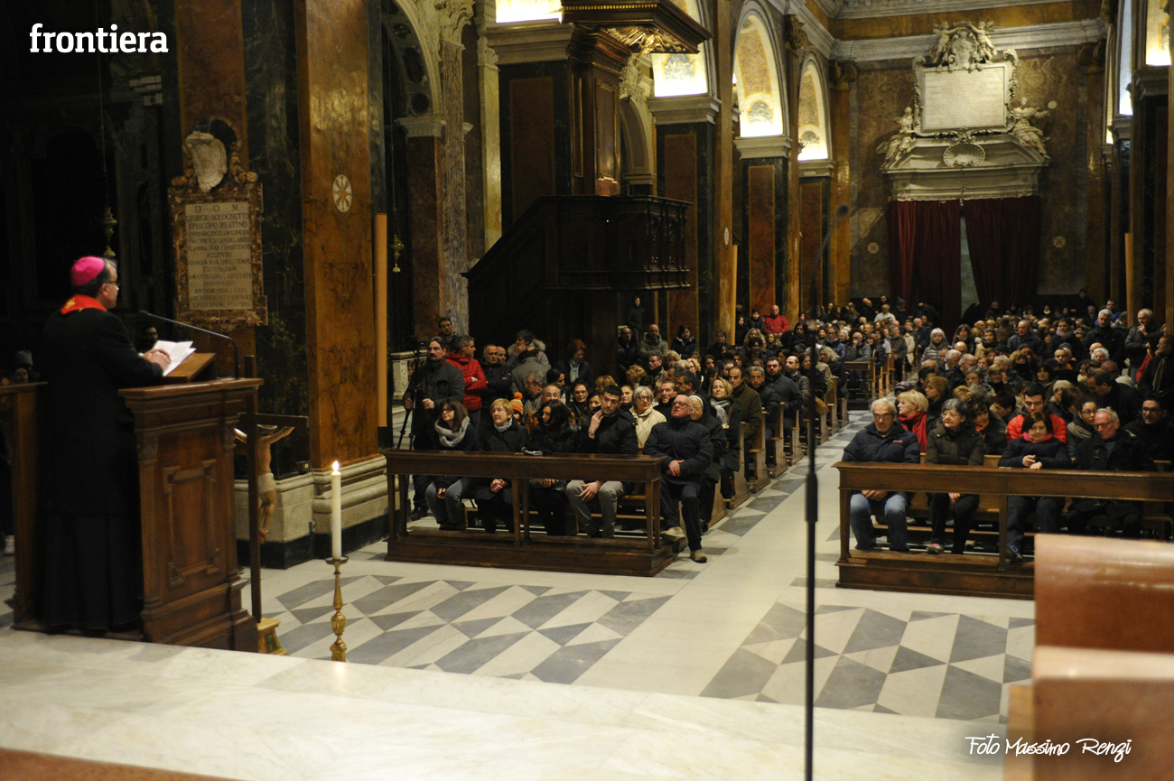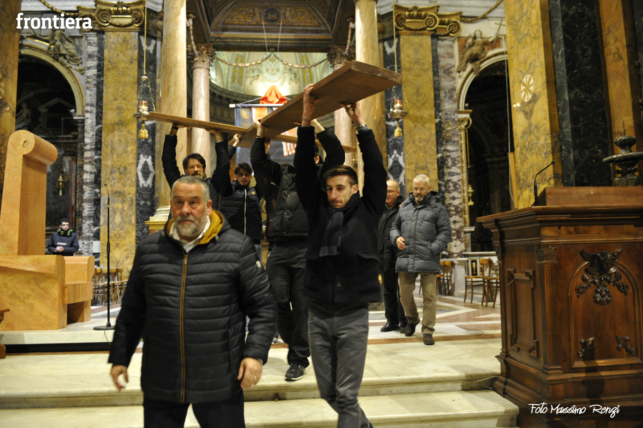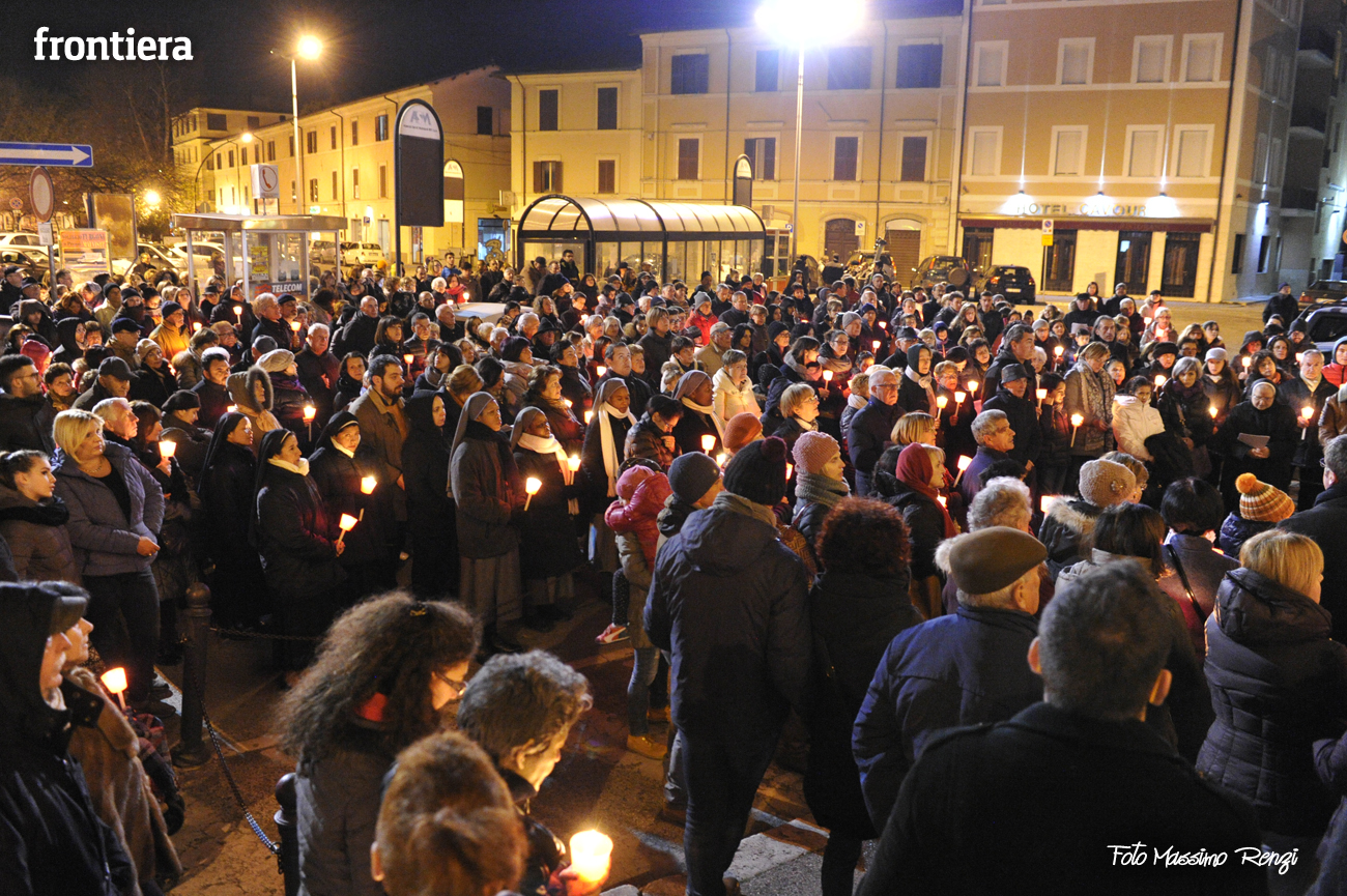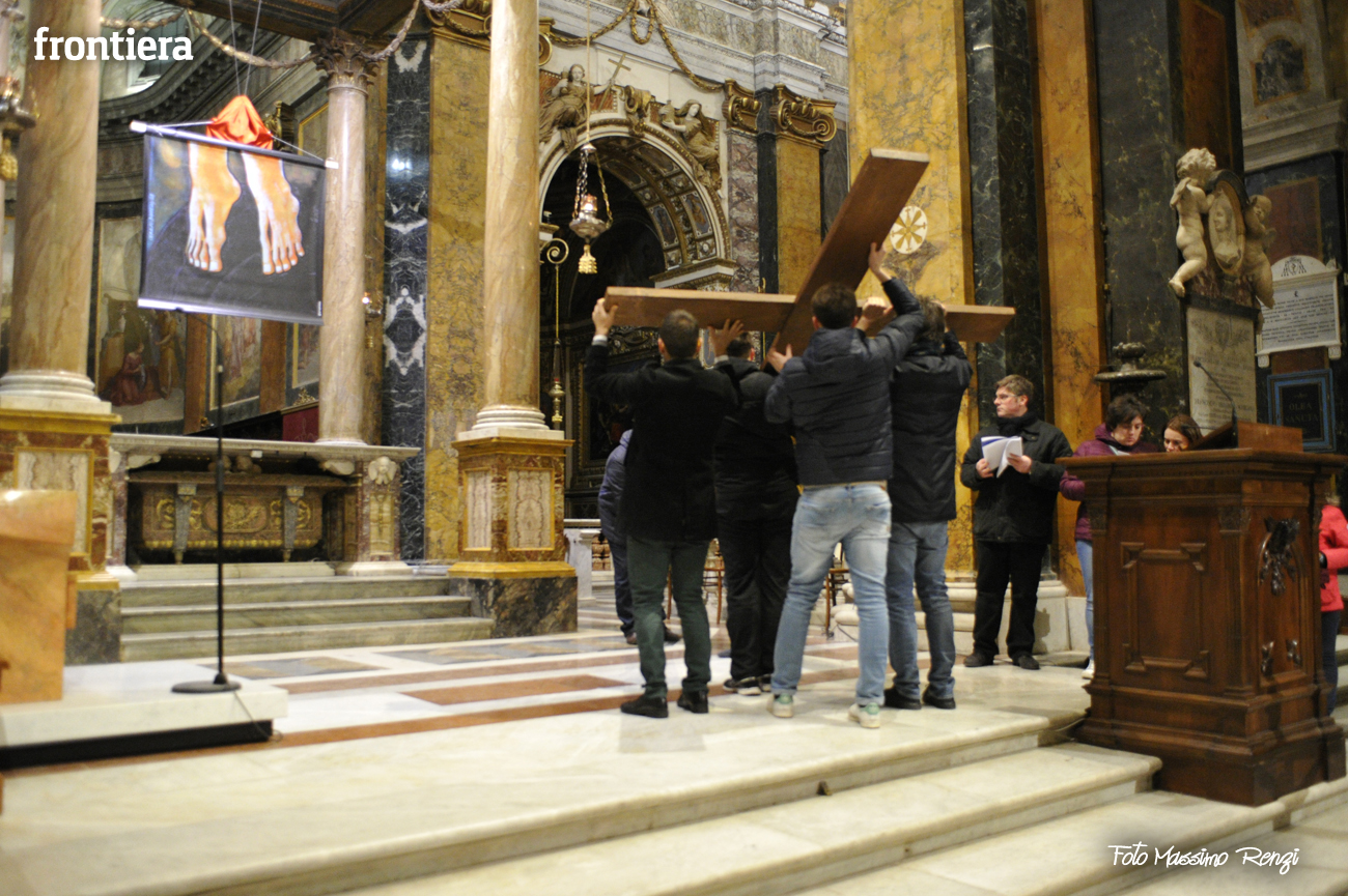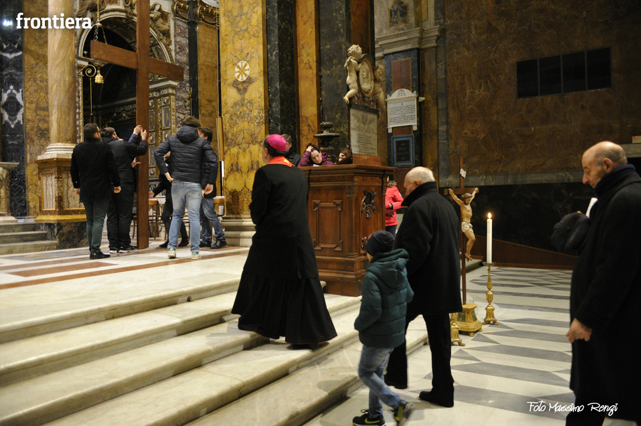 Si è tenuta nel centro storico di Rieti nella sera del Venerdì Santo una Via Crucis, presieduta dal vescovo Domenico, alla quale hanno partecipato tutte le parrocchie della vicaria. Partito dalla chiesa di San Pietro Martire, il pio esercizio ha attraversato tutti i quartieri intra moenia, raccogliendo un crescente numero di fedeli ad ogni stazione. Una moltitudine che si è infine raccolta in Cattedrale, dove ha ascoltato la parola del vescovo e ricevuto la benedizione.