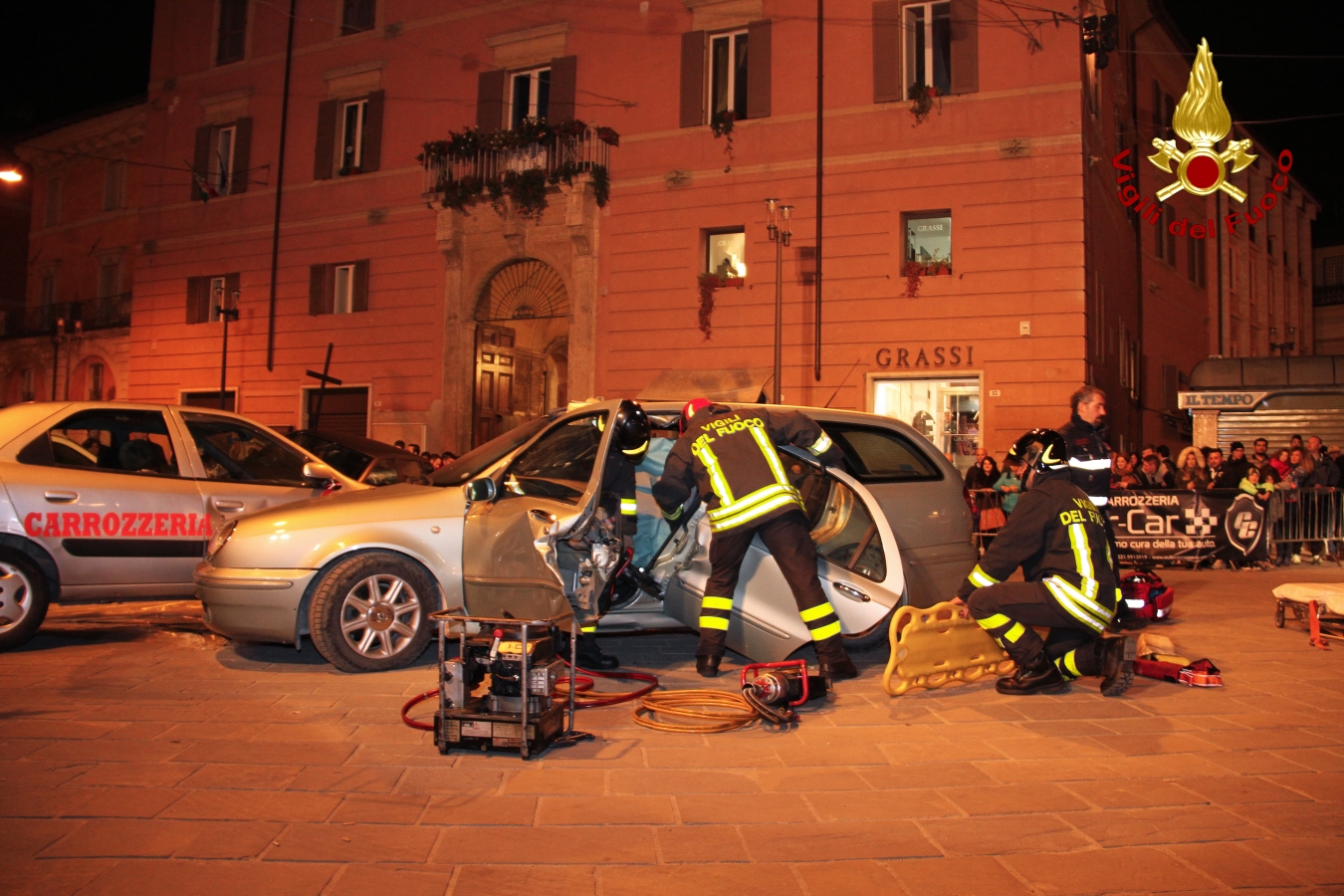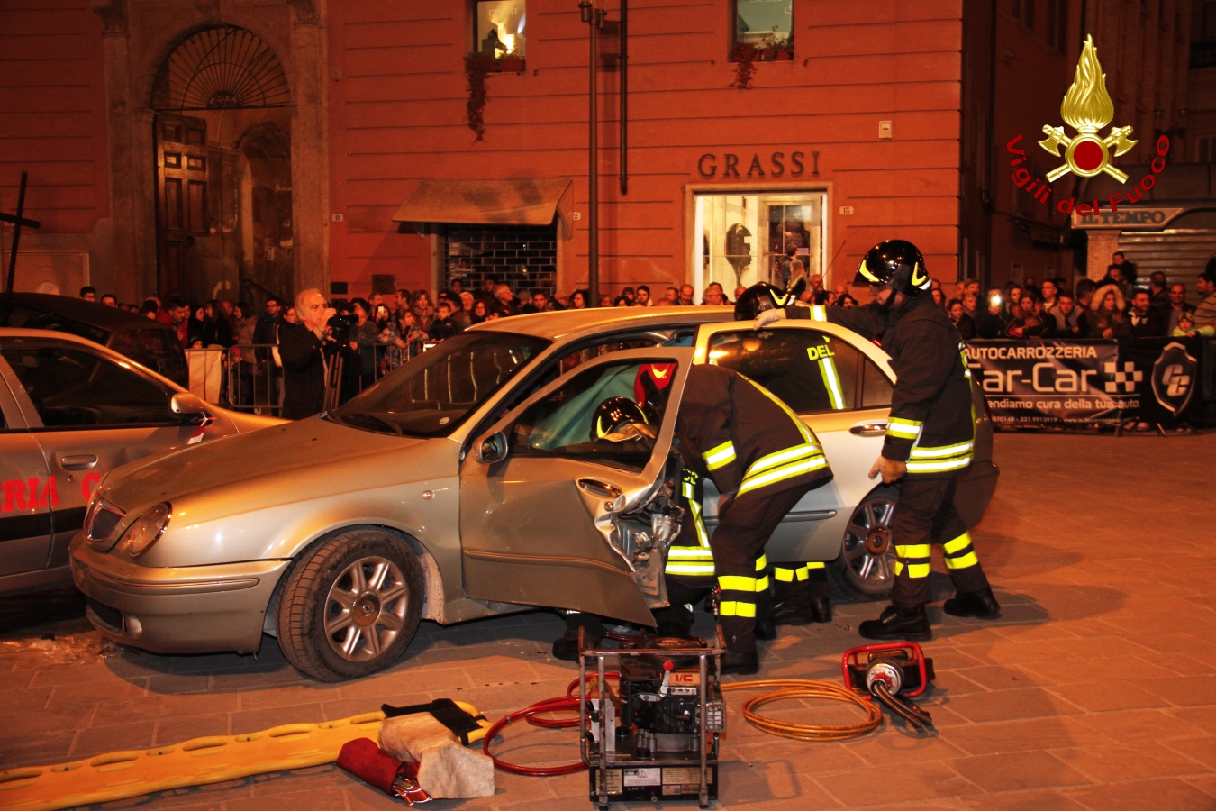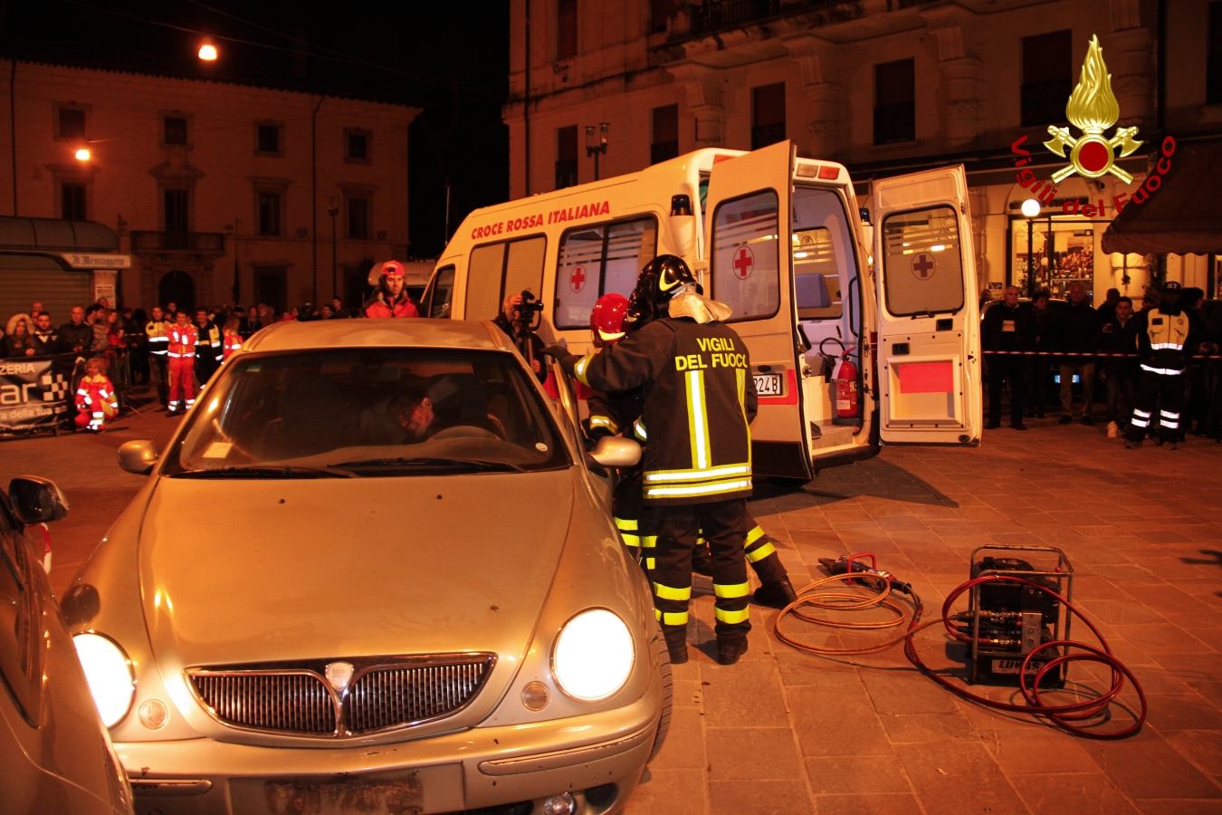 Nell’ambito della giornata internazionale dell’ONU in ricordo delle vittime della strada, l’Associazione “Segnali di Fumo” in collaborazione con l’Ufficio Problemi Sociali e Lavoro della Diocesi e il Comune di Rieti, ha organizzato ieri domenica 15 novembre nella piazza centrale del Capoluogo Sabino, una serie di eventi che hanno visto coinvolti anche i Vigili del Fuoco del Comando Provinciale di Rieti. Lo scopo è stato quello di far conoscere alla popolazione presente le varie tecniche di intervento del CNVVF simulando uno scontro tra due autovetture e tutto quello che ne consegue dopo l’arrivo sul posto dei Vigili del Fuoco attraverso la messa in sicurezza dell’intera area incidentata e la successiva estrinsecazione delle persone coinvolte e messe poi a disposizione dei Sanitari anch’essi presenti in posto.