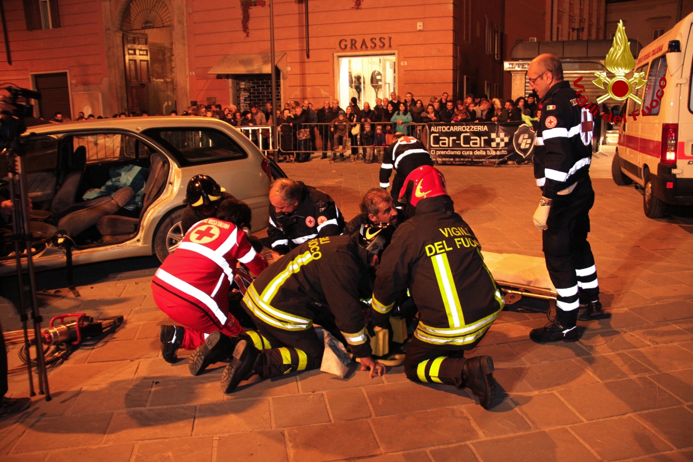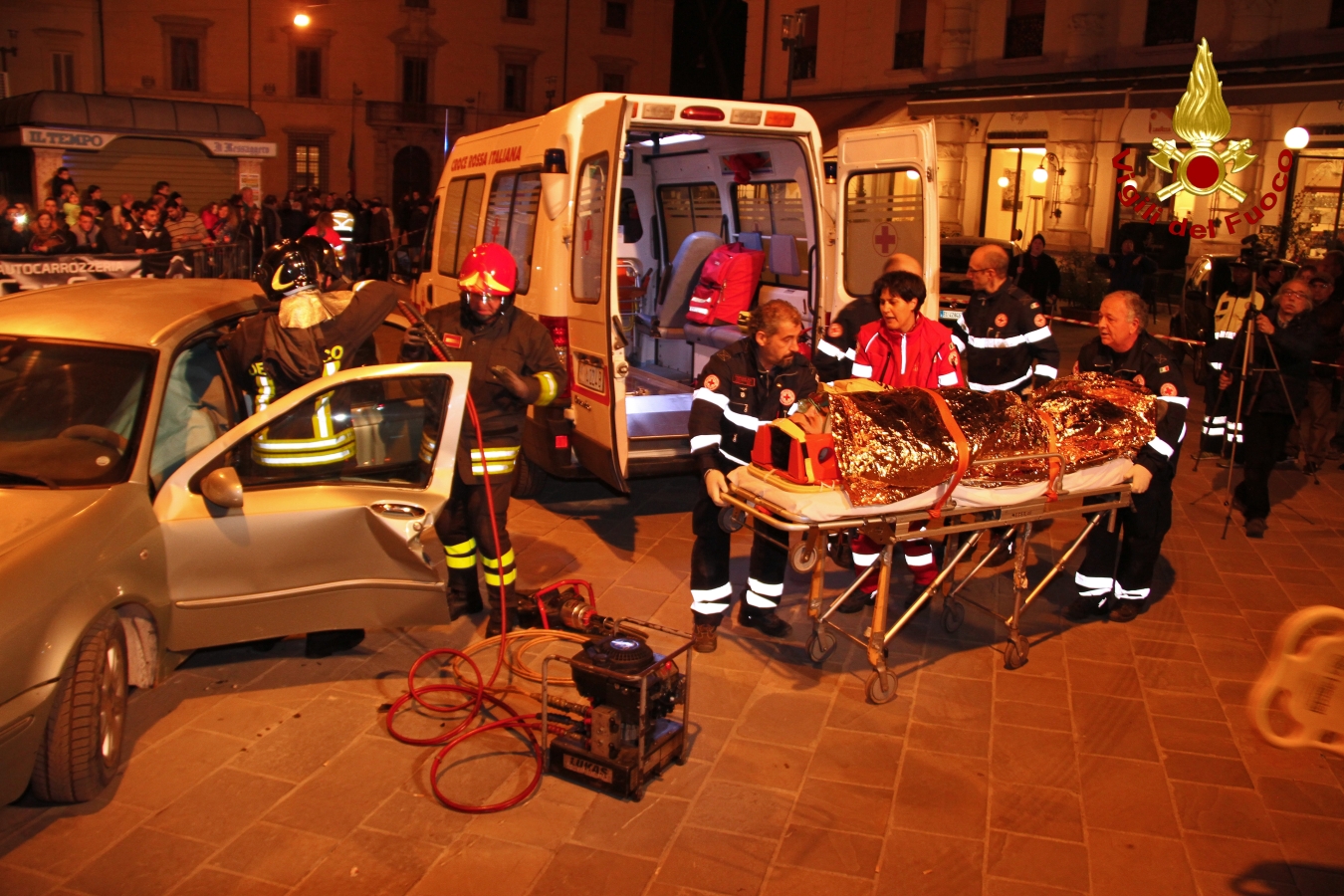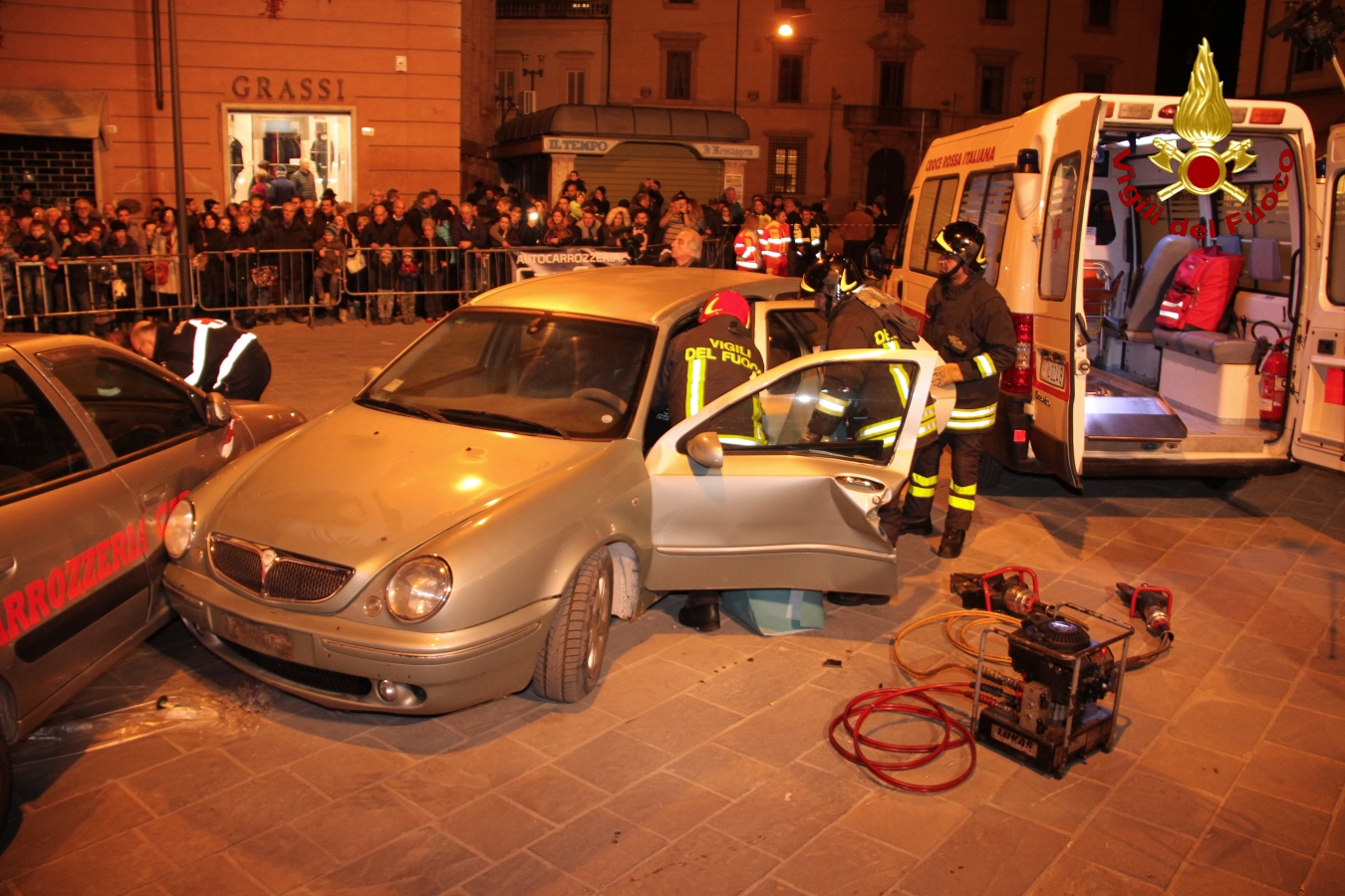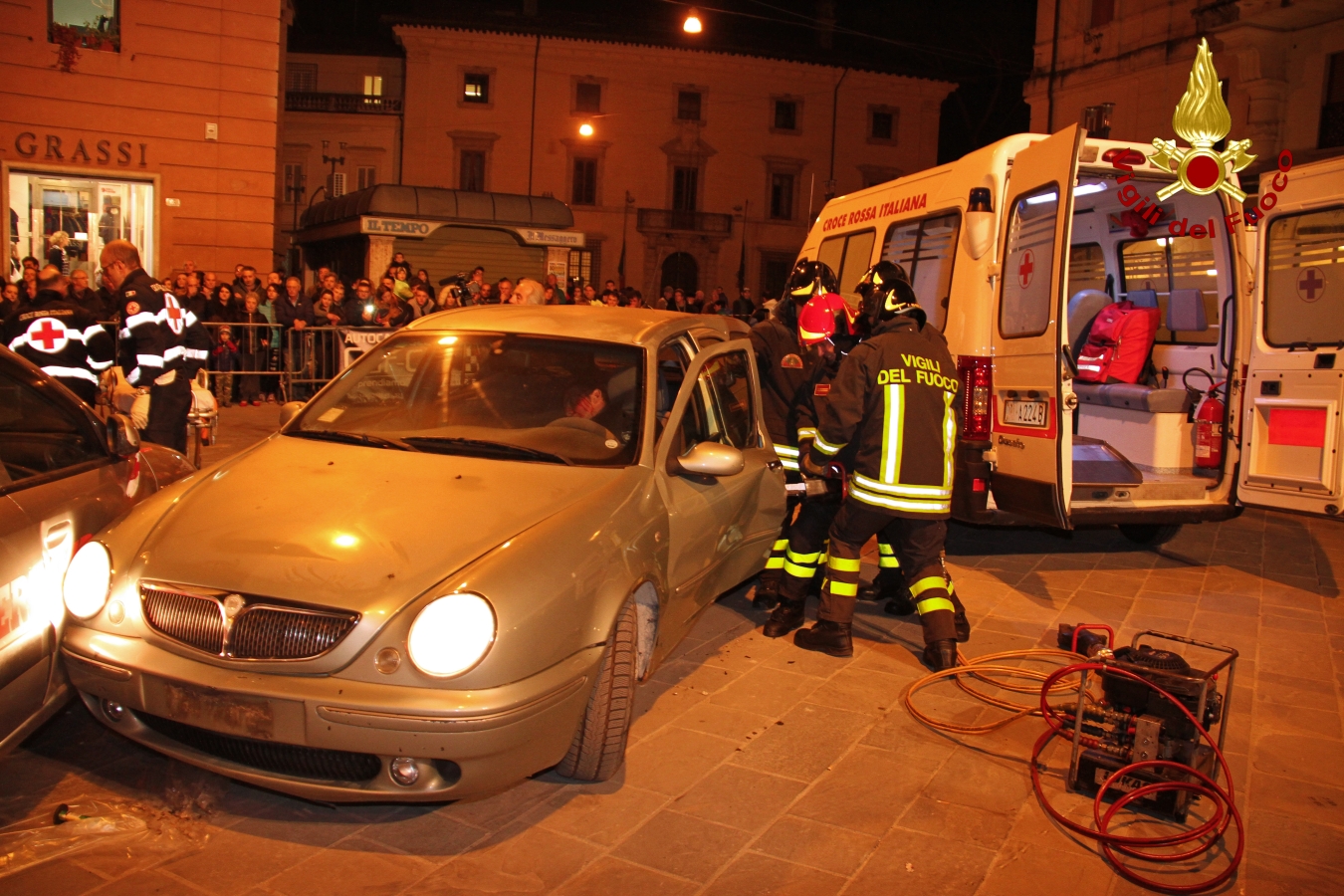 Nell’ambito della giornata internazionale dell’ONU in ricordo delle vittime della strada, l’Associazione “Segnali di Fumo” in collaborazione con l’Ufficio Problemi Sociali e Lavoro della Diocesi e il Comune di Rieti, ha organizzato ieri domenica 15 novembre nella piazza centrale del Capoluogo Sabino, una serie di eventi che hanno visto coinvolti anche i Vigili del Fuoco del Comando Provinciale di Rieti. Lo scopo è stato quello di far conoscere alla popolazione presente le varie tecniche di intervento del CNVVF simulando uno scontro tra due autovetture e tutto quello che ne consegue dopo l’arrivo sul posto dei Vigili del Fuoco attraverso la messa in sicurezza dell’intera area incidentata e la successiva estrinsecazione delle persone coinvolte e messe poi a disposizione dei Sanitari anch’essi presenti in posto.